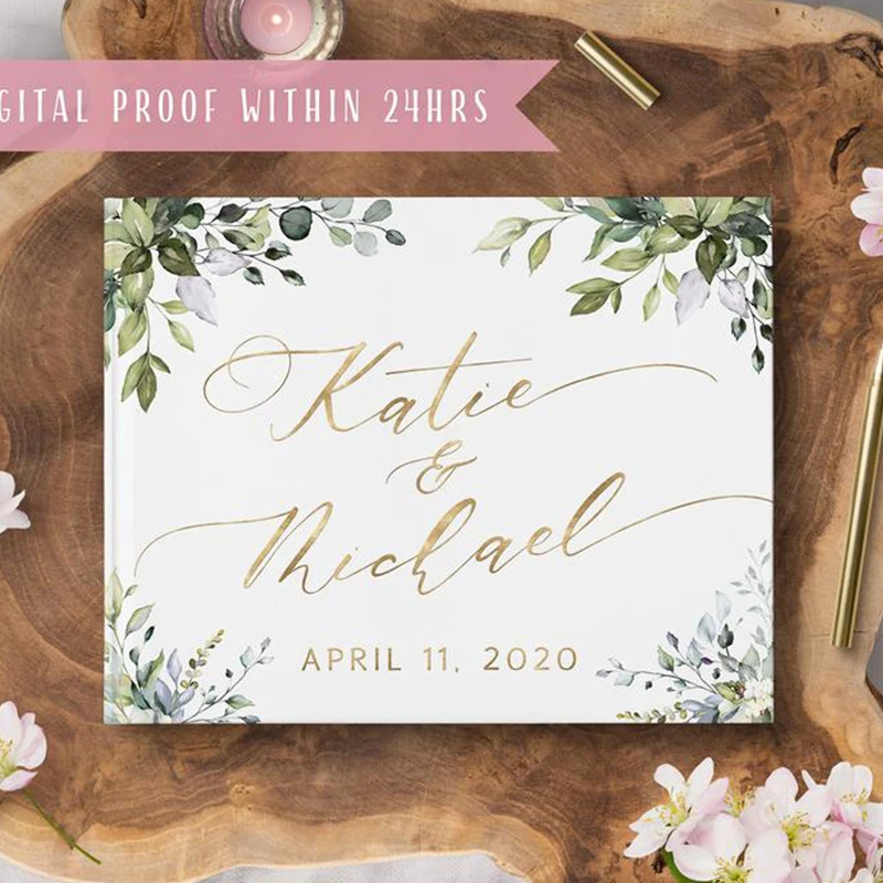 Свадебная Гостевая книга с цветами, персонализированная Белая книга для гостей, книга для свадьбы, книга для гостей с возможностью печати