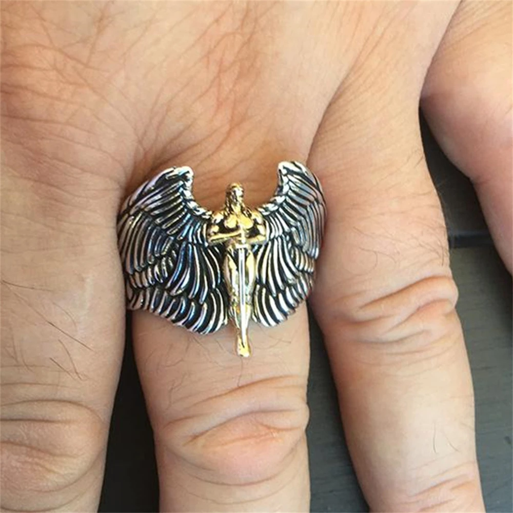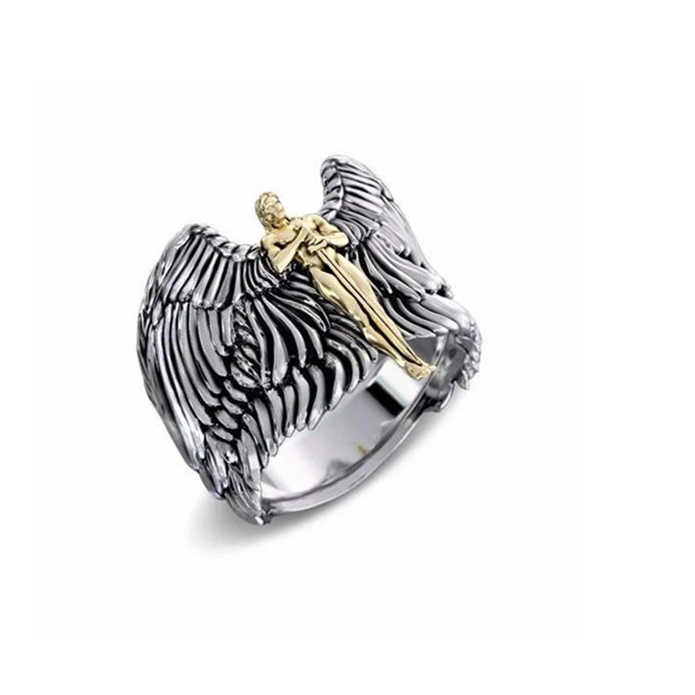 Двухцветное кольцо для пары с рисунком крыльев Archangel, украшение с перьями для мужчин и женщин, ретро кольцо в стиле хип-хоп для вечеринки, ювелирные изделия