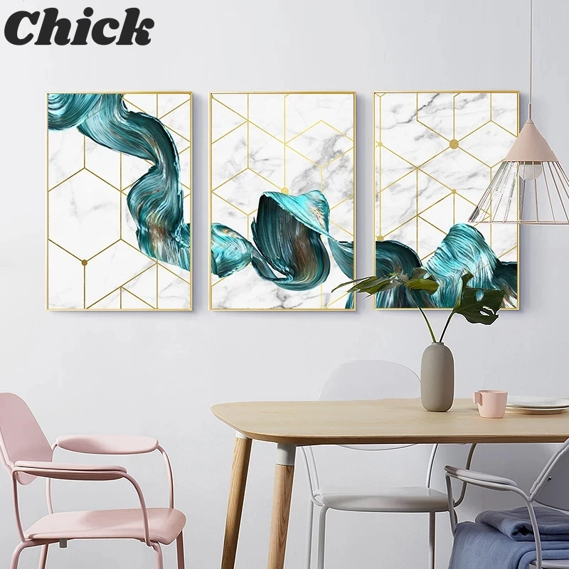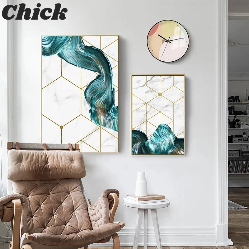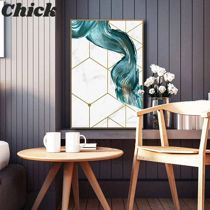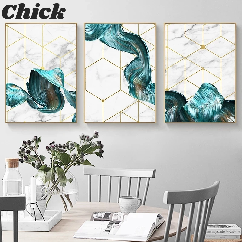 Скандинавская Геометрическая Настенная картина на холсте Абстрактная синяя ткань плакат печать Современная Минималистичная картина для гостиной домашний декор