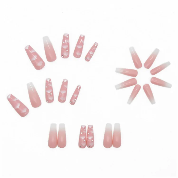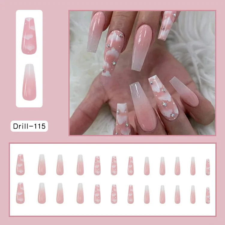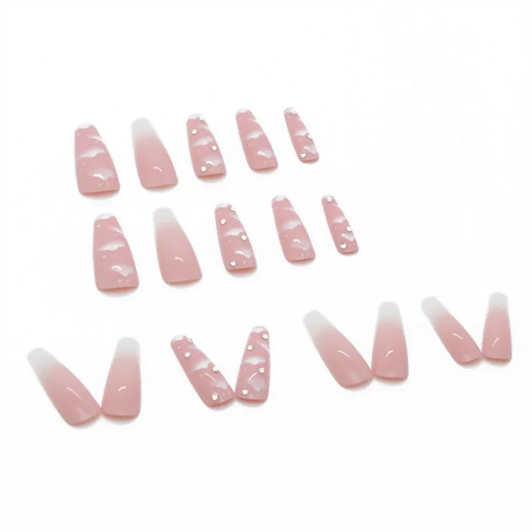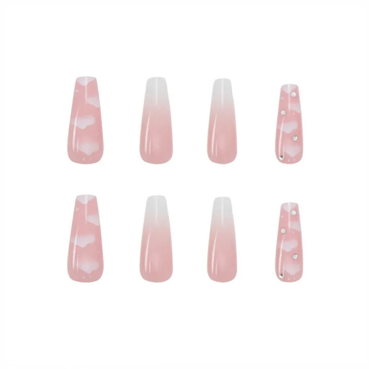 Сверхдлинные накладные ногти балерины, съемные с розовыми облаками,...