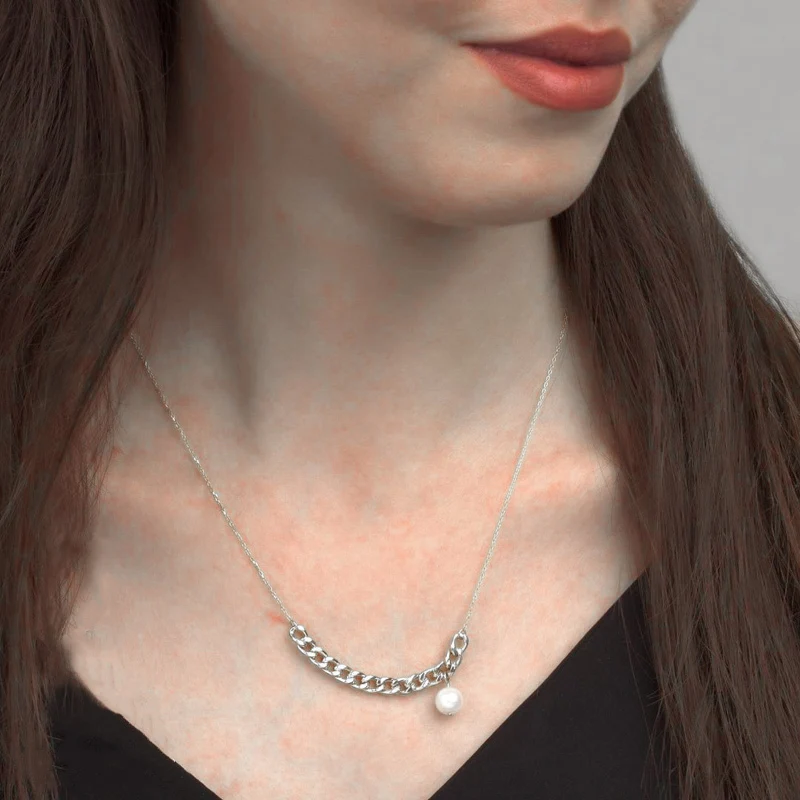 Ожерелье-цепочка женское из кубинской цепи с искусственным жемчугом