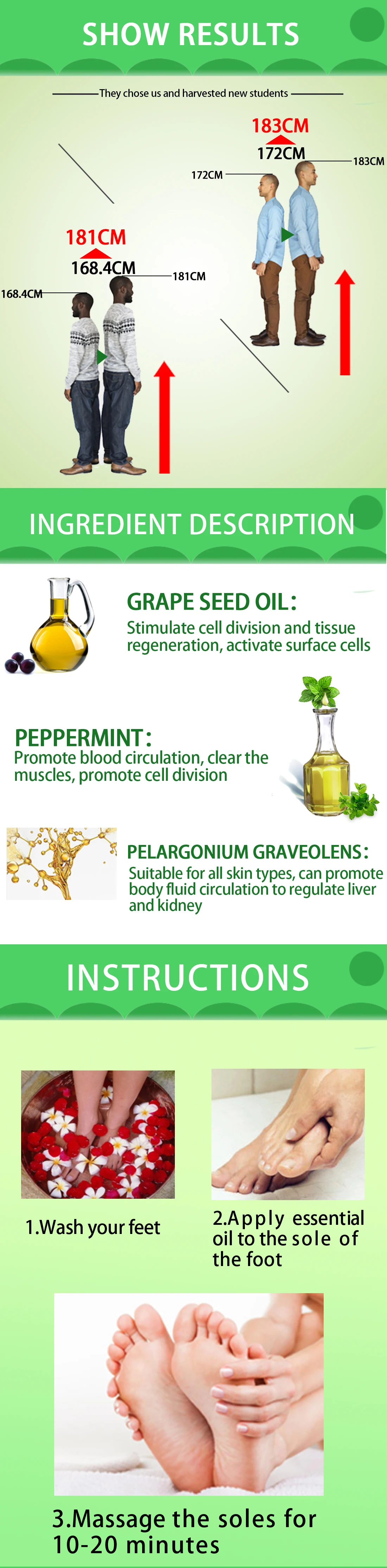Богатый разнообразием натуральных травяных растительных экстрактов используется для улучшения и облегчения ног, ускорения роста костных клеток, продления закрытия костной линии, стимулирования развития костей снова и достижения более высокого эффекта.