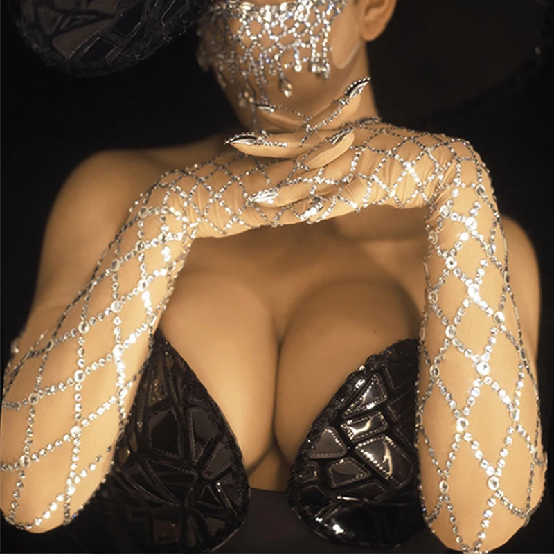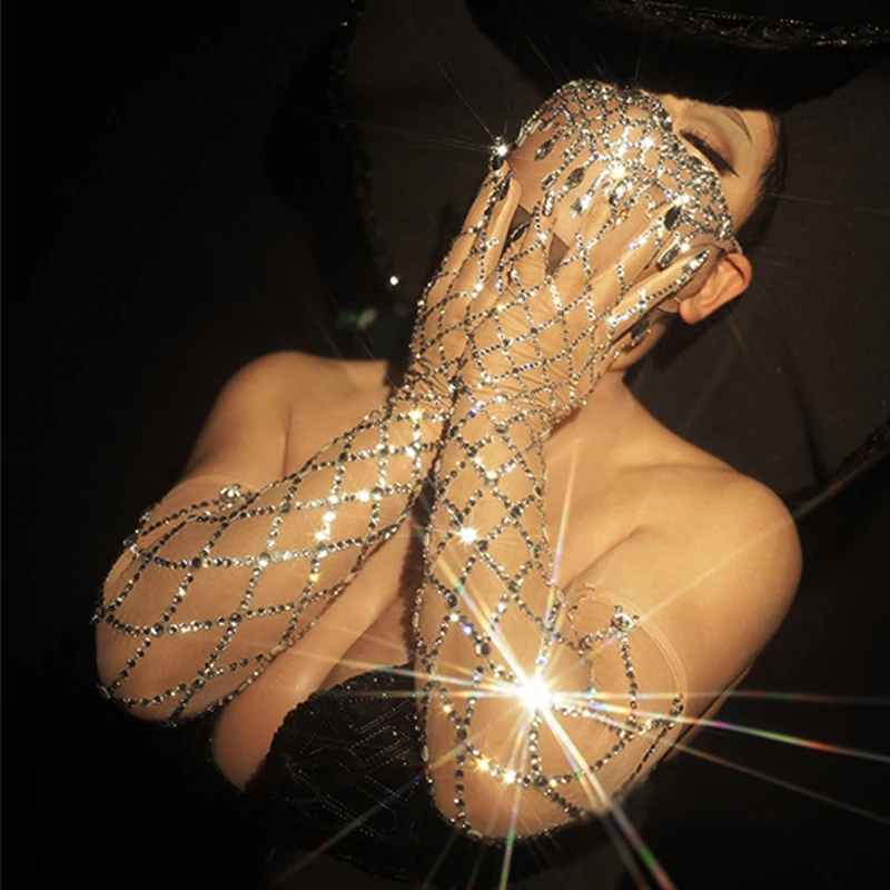 Сценический костюм певица модель ведущая полная Стразы сетчатые перчатки женские платья комбинированные Аксессуары Одежда Drag Queen VDB4219