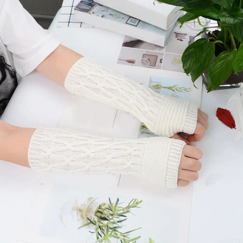 Женские перчатки с полупальцами, 1 пара, вязаные перчатки с шерстяным рукавом, мягкие теплые варежки, повседневные рукава на запястье, бесплатная доставка
