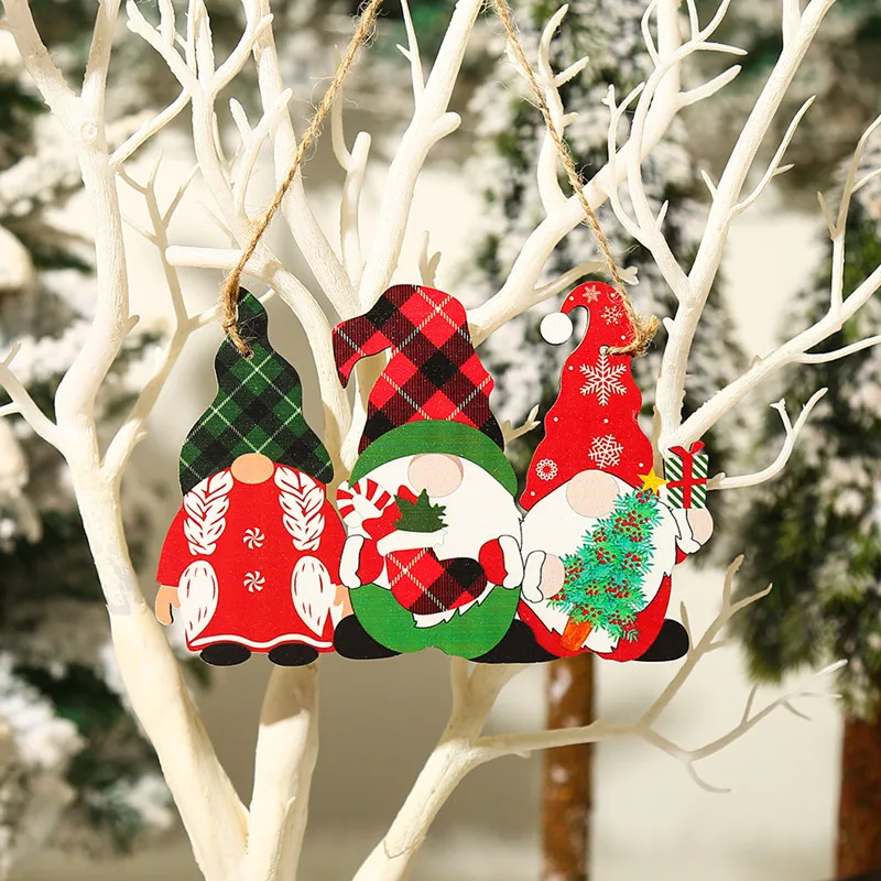 Рождественские деревянные украшения в виде Санта-Клауса, гнома, дер...