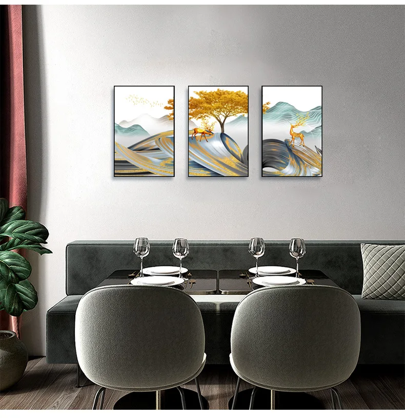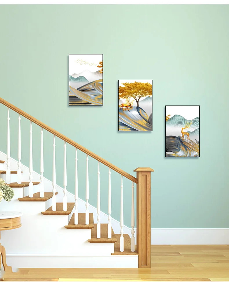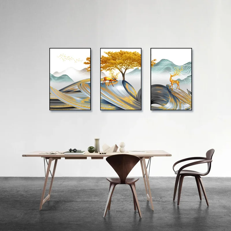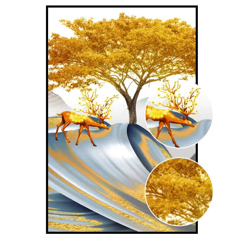 Золотистый лист олень камень Абстрактная живопись настенное украшен...