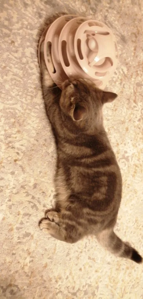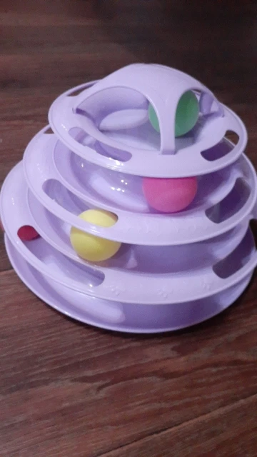 Прикольная игрушка! Мне понравилась больше, чем кошке. Пришла быстро, меньше месяца (две недели, кажется). Упаковка - два слоя пупырчатой пленки. Инструкции нет, но она и не нужна, всё легко собирается. Цвет соответствует заявленному.