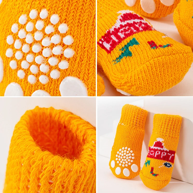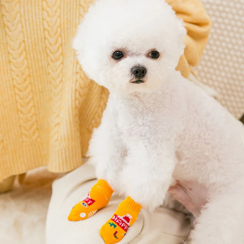 Носки для домашних животных 4 шт., Мультяшные Нескользящие вязаные ...