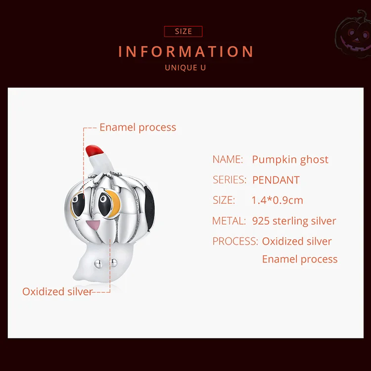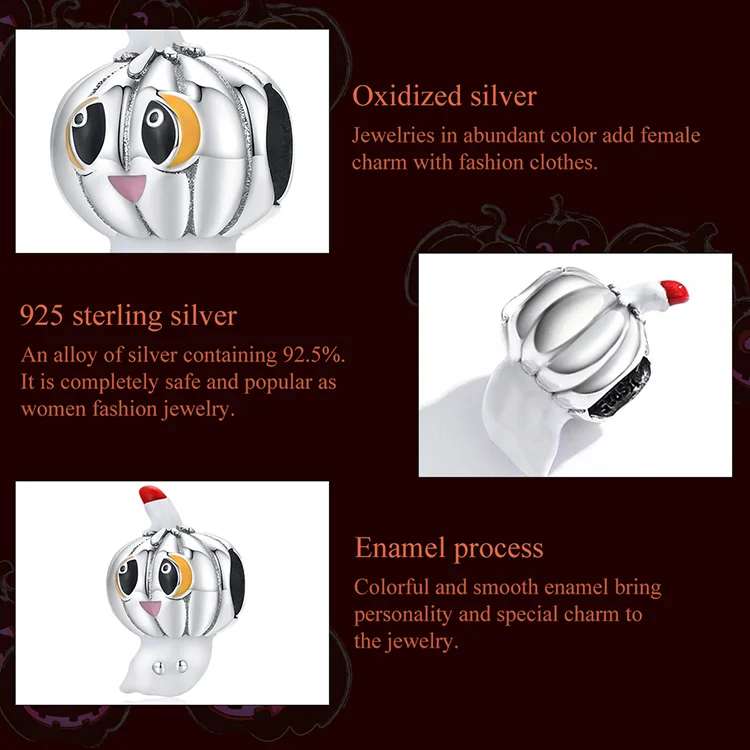 Bamoer, 925 пробы, серебряный, на Хэллоуин, Очаровательная тыква, Ч...