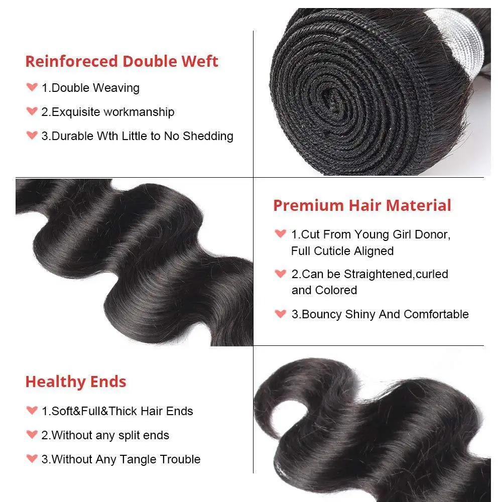 Волнистые необработанные человеческие девственные волосыМашина двойной уткаМожет быть отбелен или выпрямленОдин донор волос используется для более длительного времени, чем девственные человеческие волосыКончик волос нормальный и здоровый