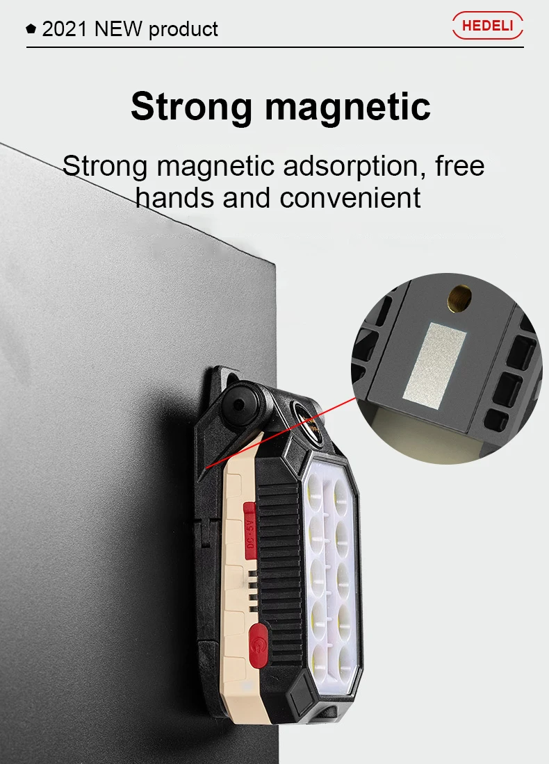 1: продукт имеет индикатор питания, вы всегда можете узнать оставшуюся батарею.2: есть мощные магниты на дне, вы можете прилипать к любой железной поверхности.3: Нижняя рама может быть превращена в крючок и может быть подвешена во многих местах.4: оснащен чередующимися красными и синими огнями, которые могут использоваться в качестве предупреждающих огней
