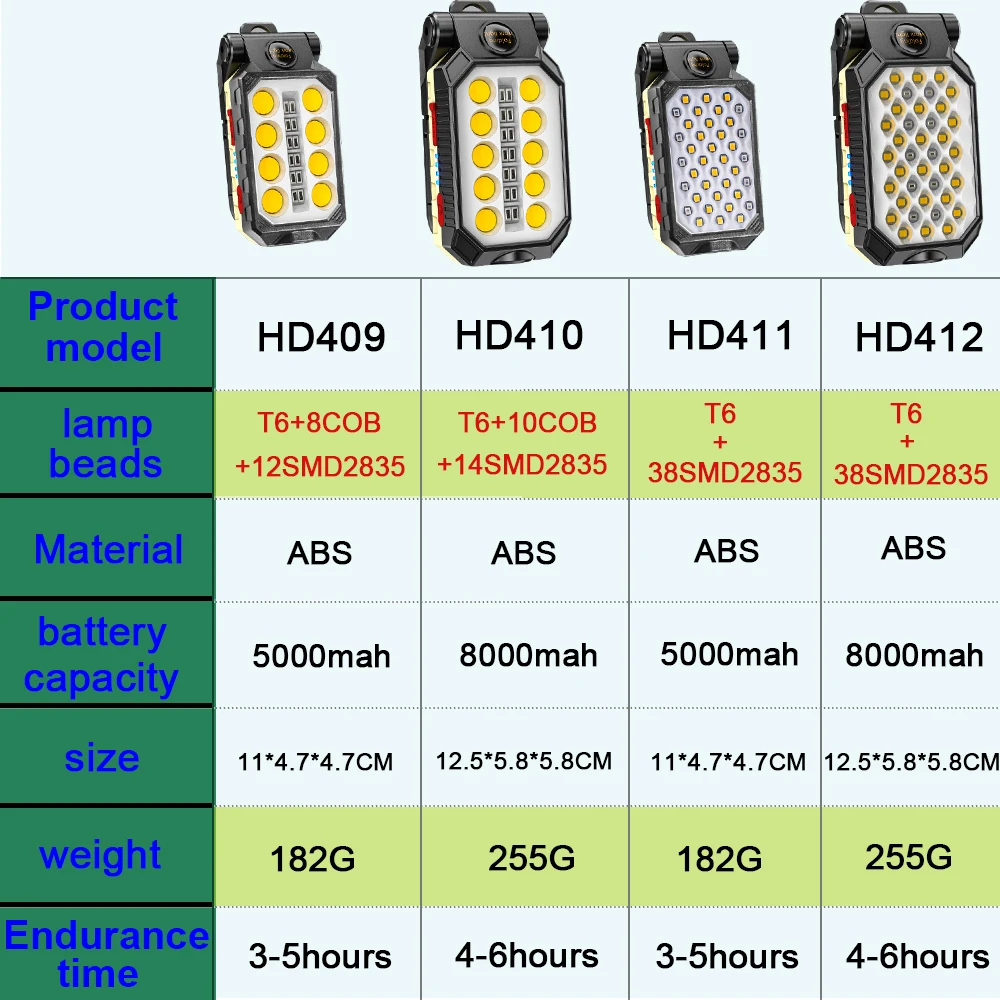 Бренд: PAWEINUOМодель: HD409 / HD410 / HD411 / HD412Материал изделия: АБС-пластикСпособ зарядки: зарядка через USBВремя зарядки: 3 часаЕмкость аккумулятора: встроенный аккумулятор 18650 8000 мАч/Встроенный аккумулятор 18650 5000 мАчВремя выдержки: 4-6 часовДисплей питания: боковой дисплей заряда