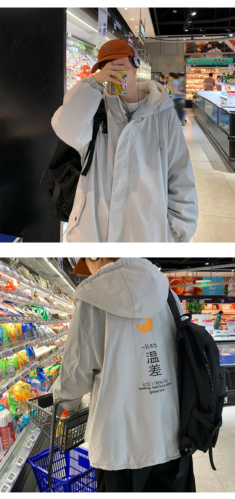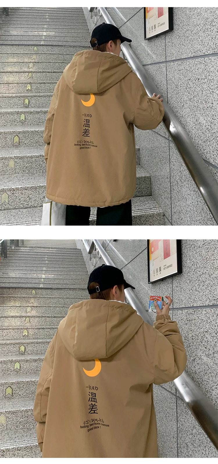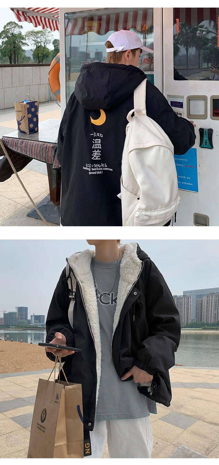Мужские парки из овечьей шерсти Privathinker Moon Graphic, теплая Утепленная зимняя куртка Harajuku, модные мужские повседневные пальто