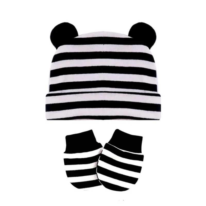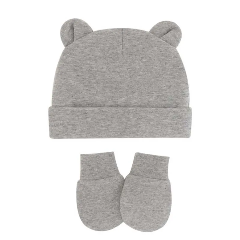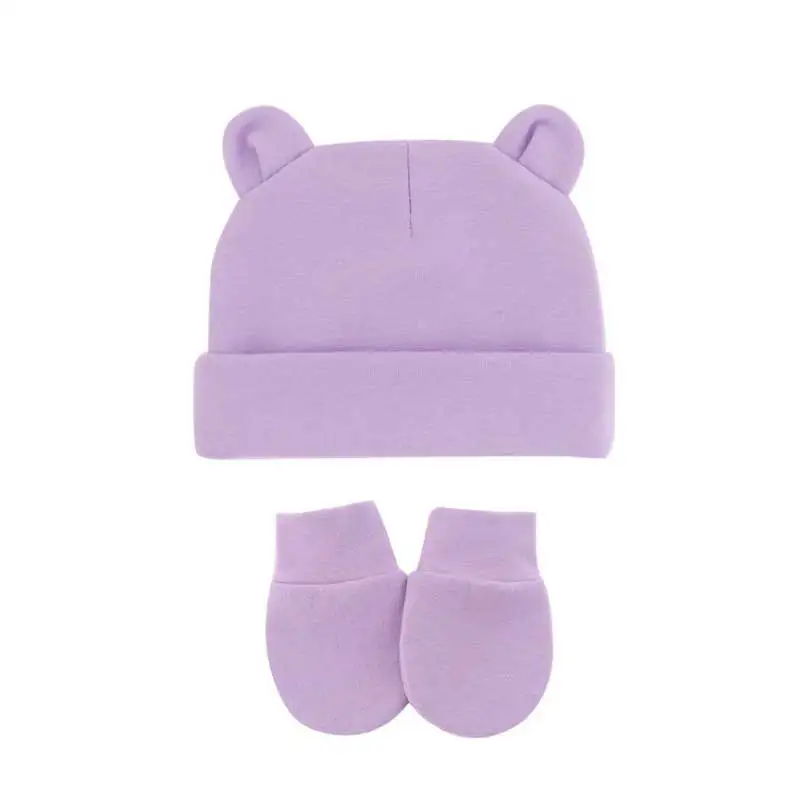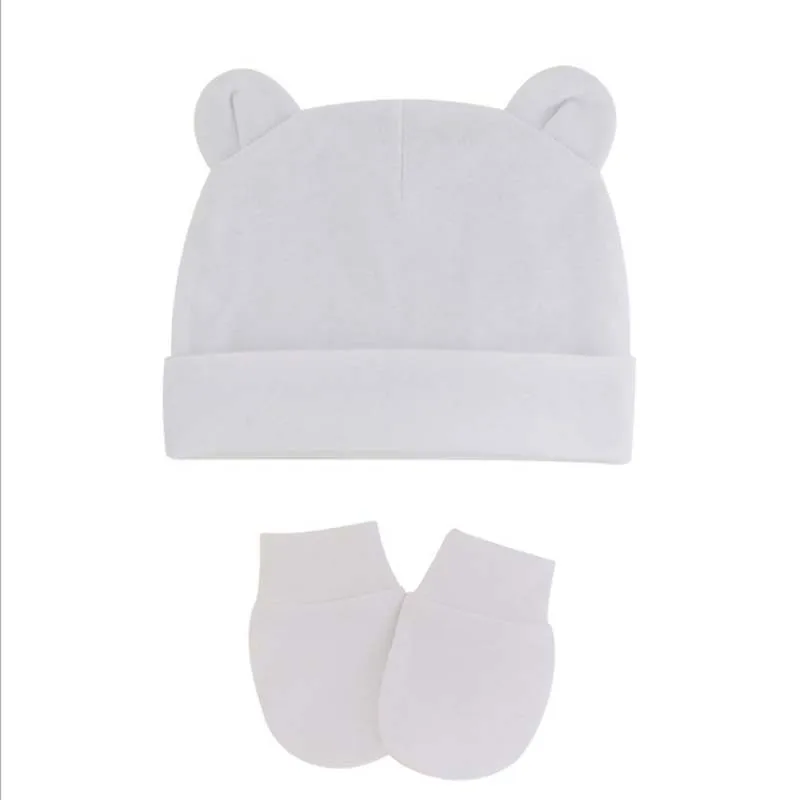 Хлопковые облегающие шапки для новорожденных, однотонные яркие эластичные теплые шапочки и перчатки для младенцев
