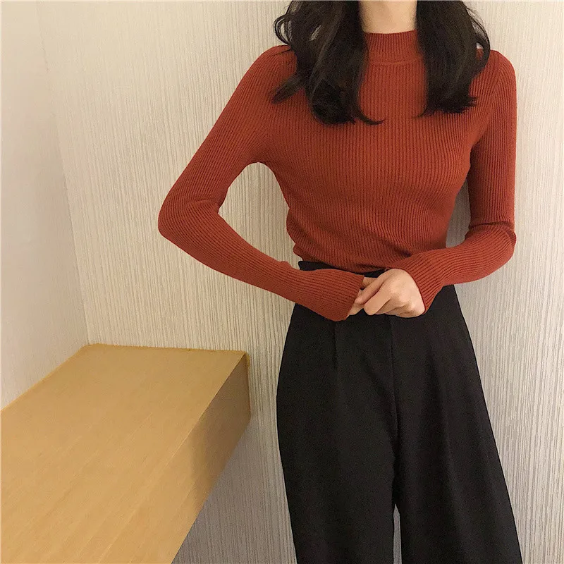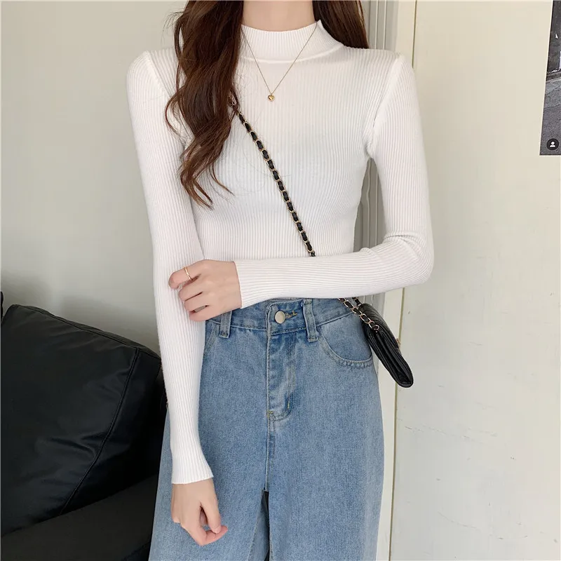 Женские пуловеры, свитер, Осень-зима, водолазка, вязаный свитер, женские топы, короткий облегающий свитер с длинным рукавом для девочек
