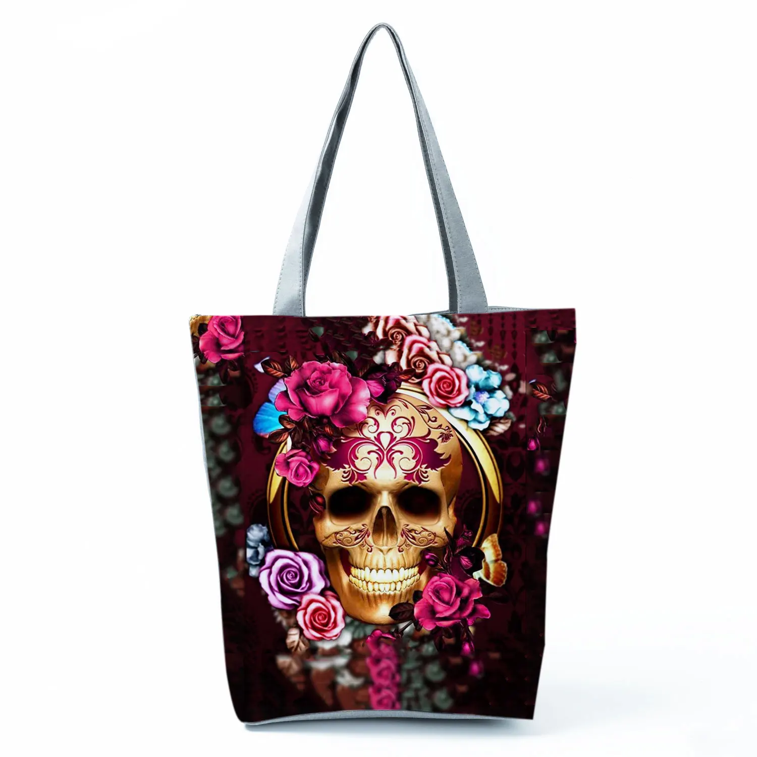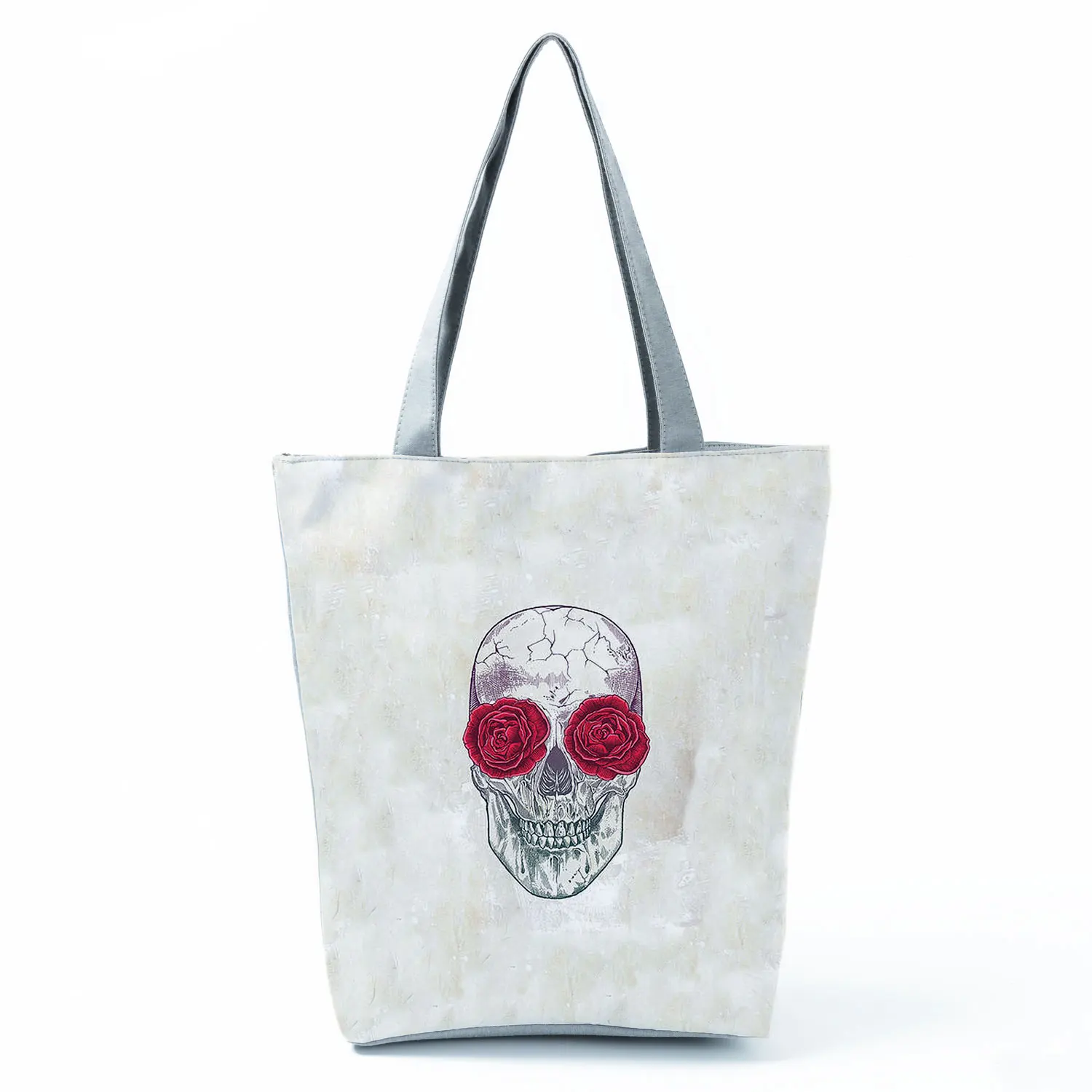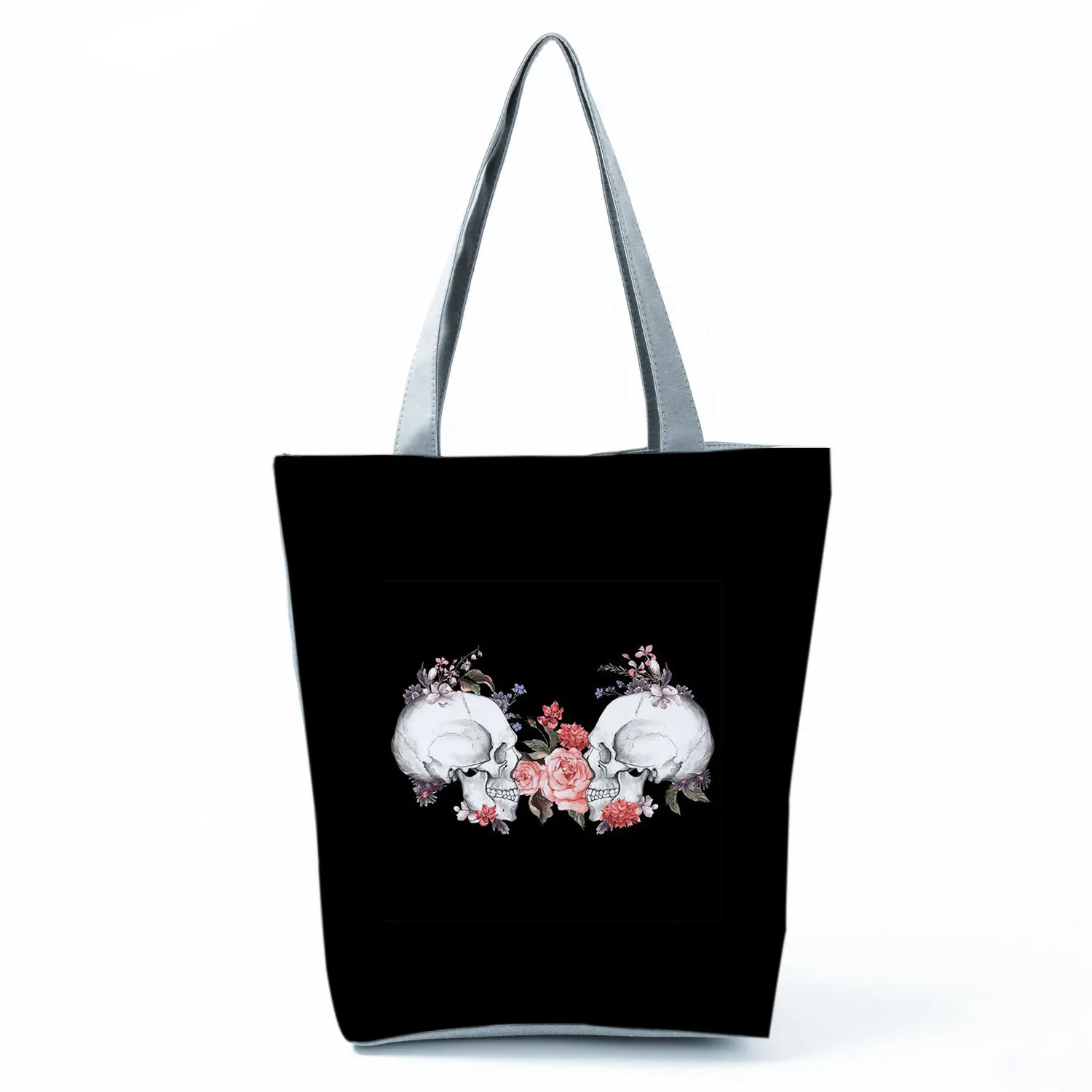 Эко-Шоппер с принтом черепа на Хэллоуин, женские сумки, многоразовые женские сумки для продуктов, крутой подарок