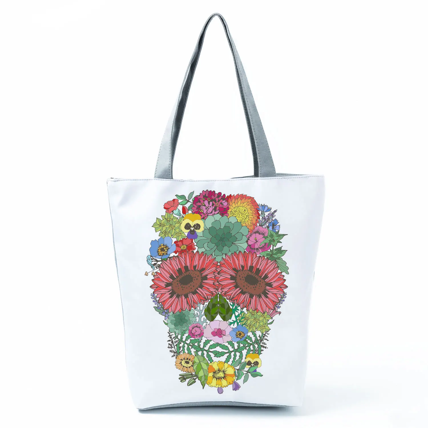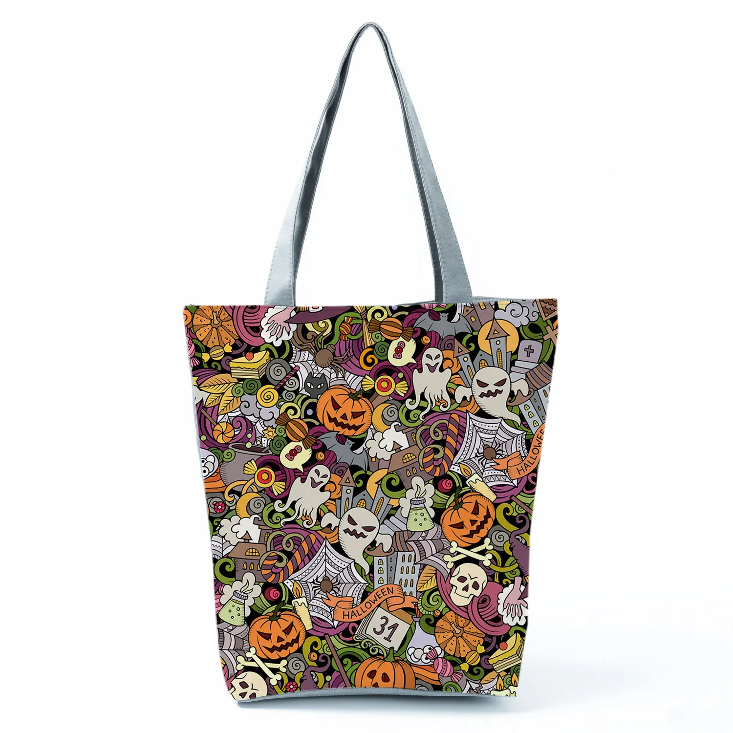 Хэллоуин с принтом черепа индивидуальные Эко шоппер сумки из полиэстера сумки женские сумки многоразовые жены продуктовые сумки крутой подарок