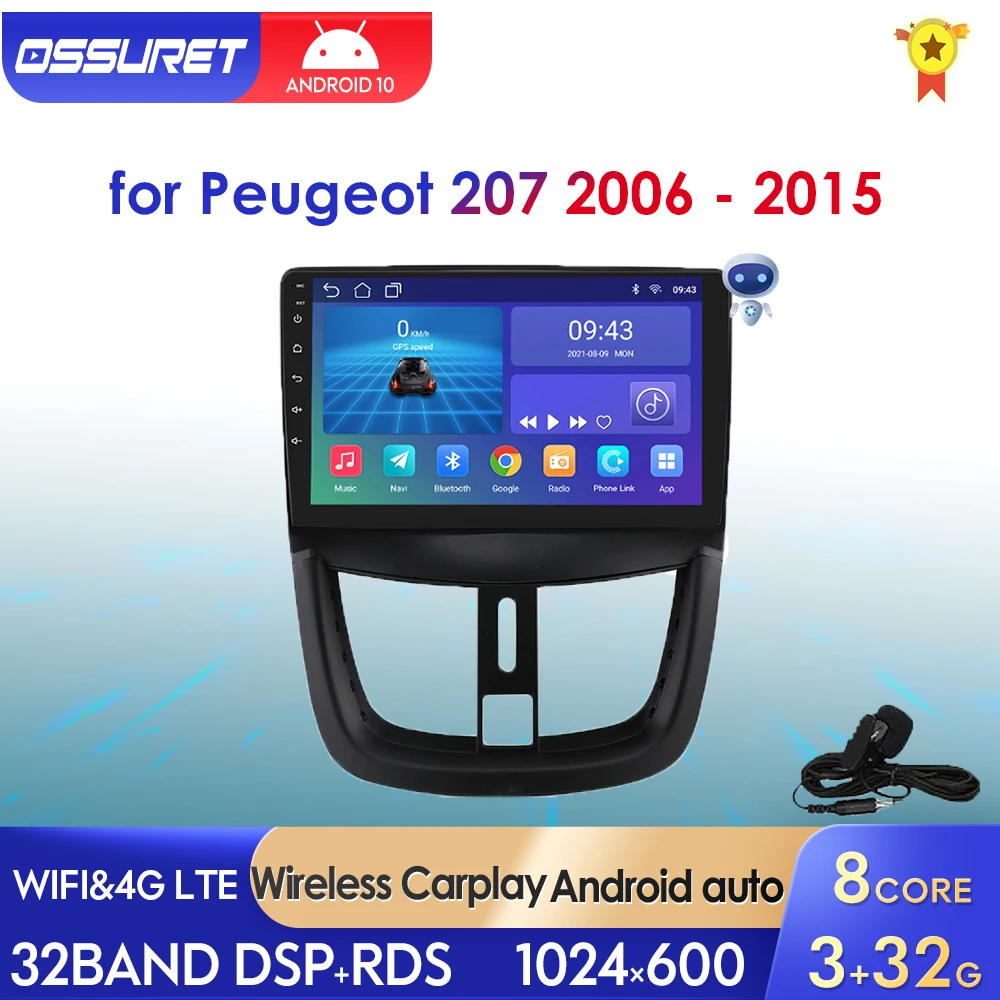 Автомобильное радио OSSURET для Peugeot 207 207CC 2006 - 2015 2 Din...