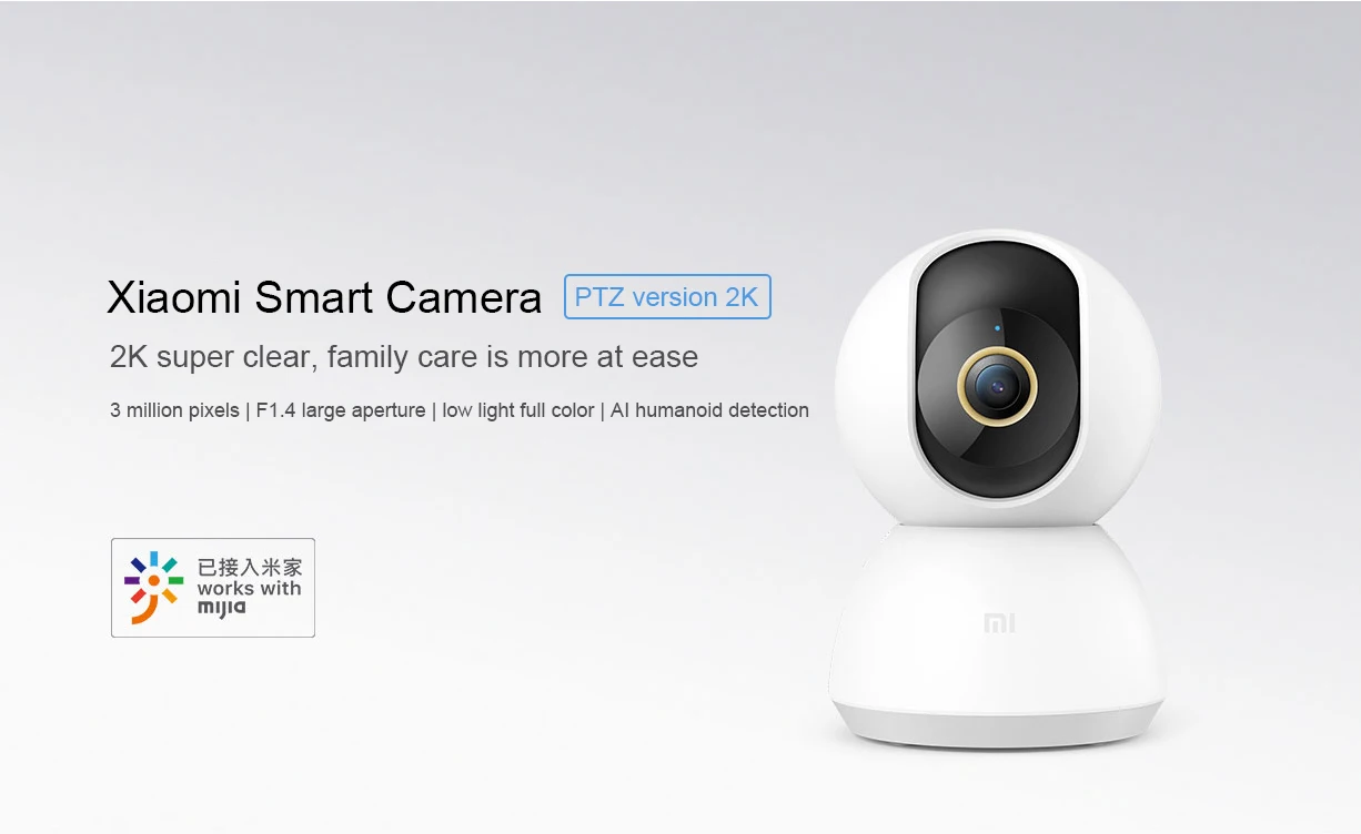 Смарт-Камера XiaomiPTZ версия 2K 2K супер чистый, забота о семье более легка 3 миллиона пикселей | F1.4 Большая диафрагма | Низкий светильник, полный цвет | AI humanoid detection