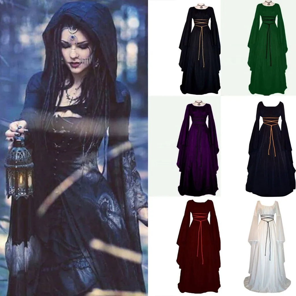 Женское винтажное платье до пола, готическое платье в средневековом стиле, длинное платье для косплея в стиле ретро,