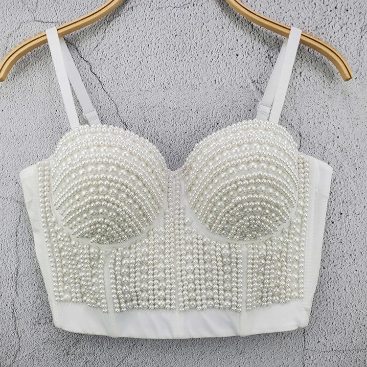 2021 женские сексуальные топы на бретельках с жемчужным бисером, женские модные короткие топы без бретелек, женские летние майки