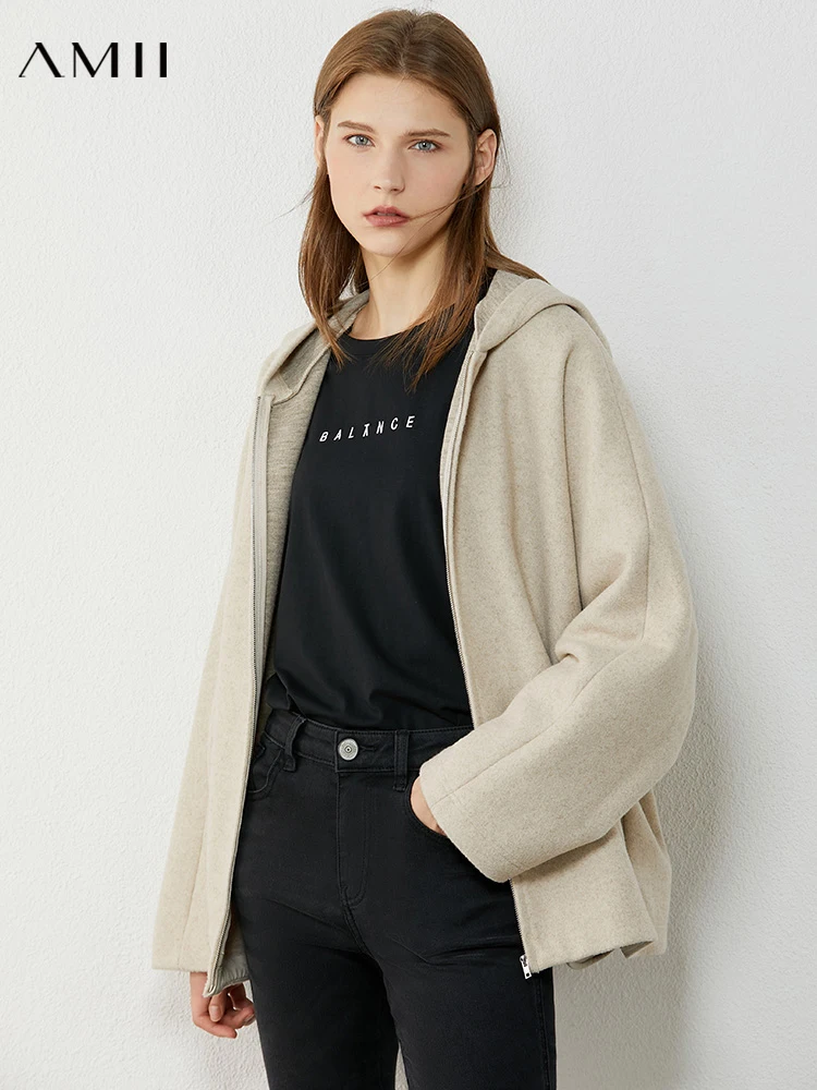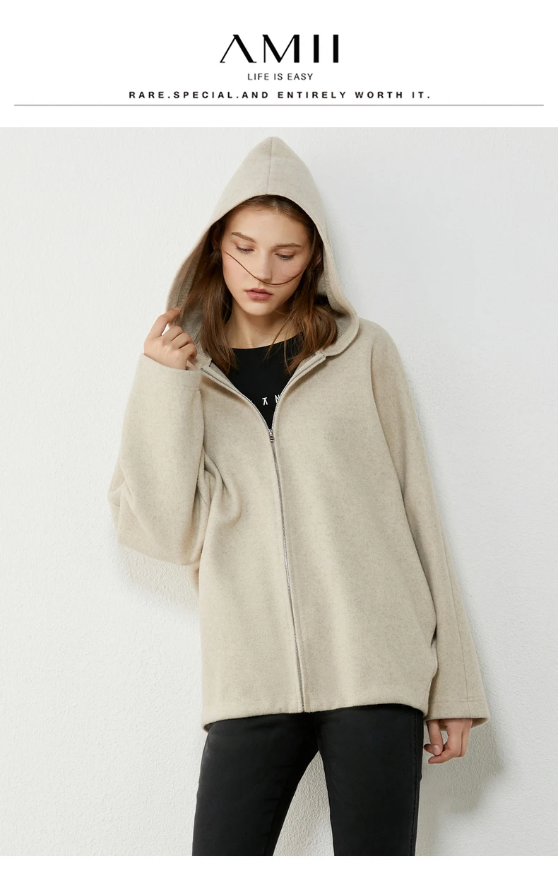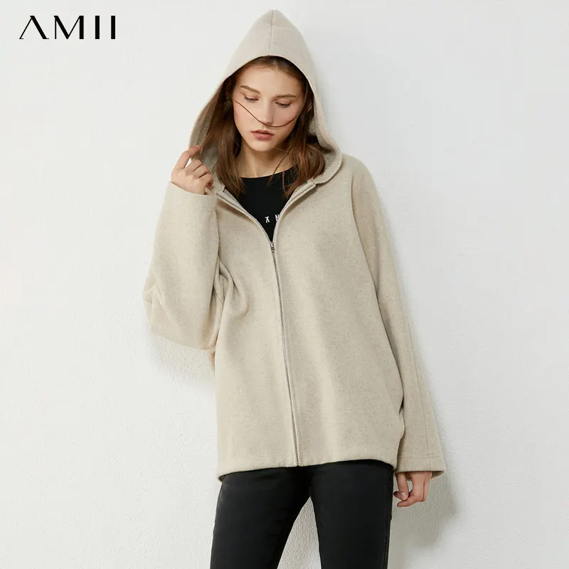 Amii минимализм зимняя женская куртка повседневная толстовка на молнии с капюшоном пальто свободная верхняя одежда осенняя одежда новые женские куртки 12130475
