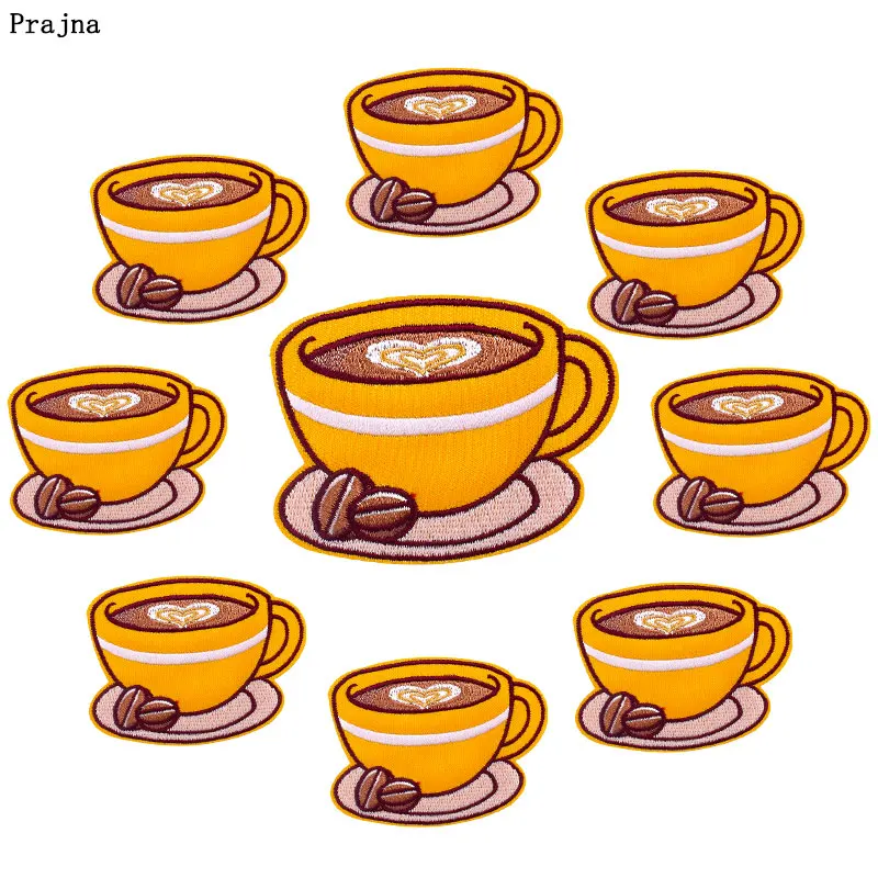 Prajna 10 шт. жёлтая кофейная чашка, накладные железные вышитые патчи для одежды, Мультяшные Аппликации, нашивки на одежду, значки, сделай сам