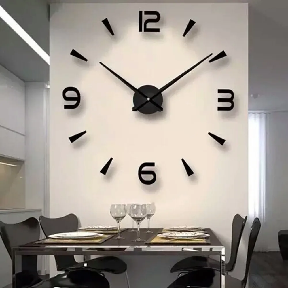 Настенные часы Kingneed сделай сам, 3D безрамочные наклейки без отверстий, настенное украшение для гостиной, спальни, офиса, черный цвет (2 часа в коробке)
