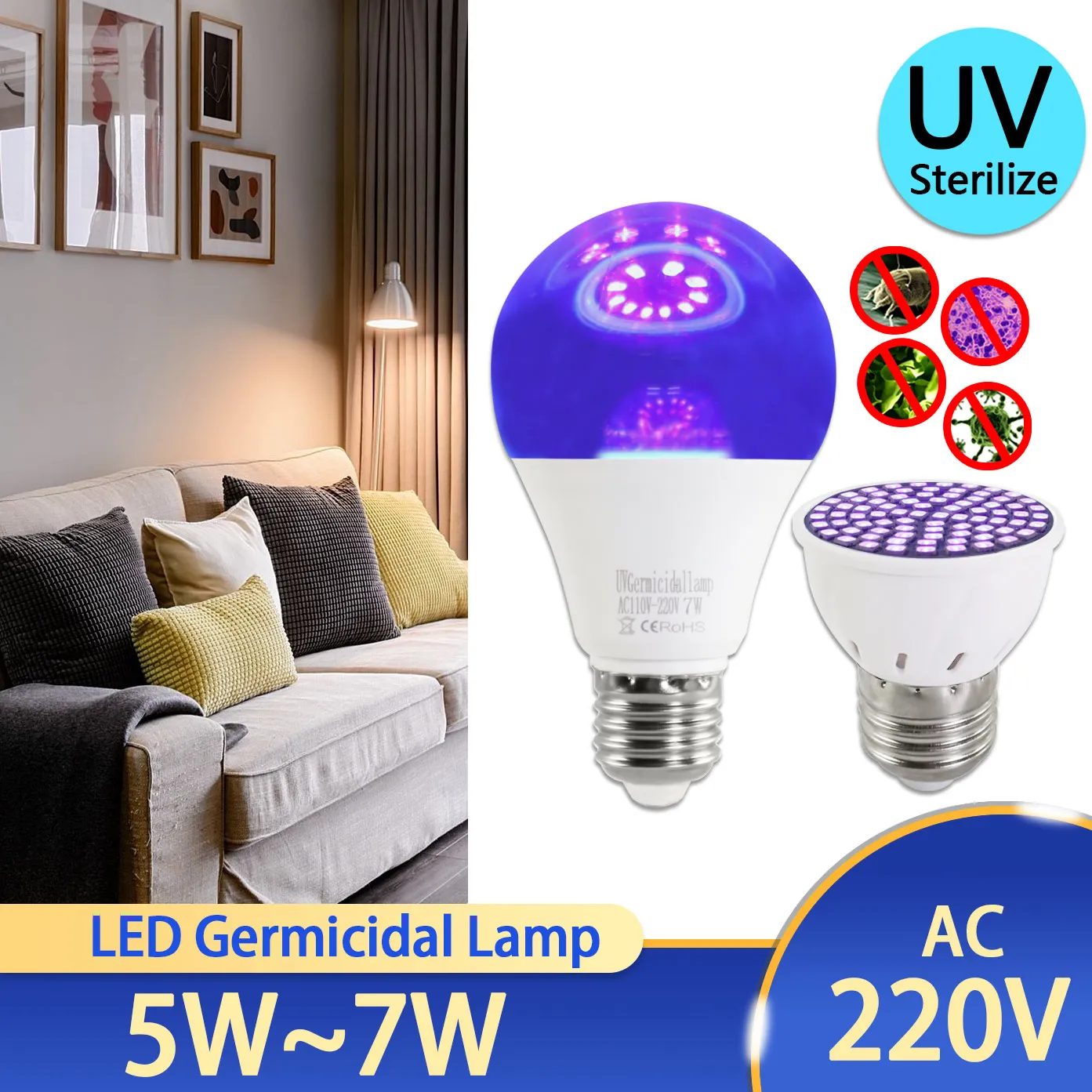 Ультрафиолетовая бактерицидная Светодиодная лампа GU10 E27 MR16 E14, УФ-лампа для дезинфекции, светодиодная лампа для стерилизации 2835 SMD 220 в 240 В, светодиодный трафиолетовая Светодиодная лампа
