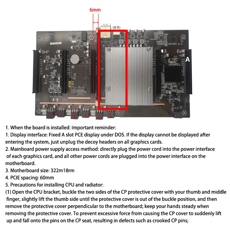 1. Материнская плата BTC79X5 V1.0 использует чип H61 и одноканальный ЦП с разъемом 20112. Графический интерфейс 5 PCIE 3,0 X8, расстояние 60 мм, поддерживает графическую карту RTX3060, вычислительную мощность одной карты до 48 мгн/с и более, идеальная поддержка видеокарты 4G, значительно улучшает функцию майнинга вычислительной мощности3. Хорошее качество: Этот продукт изготовлен из высококачественных материалов, тонкой работы, очень хорошего качества и длительного срока службы.4. Портативность: Этот продукт имеет небольшие размеры и светильник вес, его очень удобно носить с собой.5. Простая установка: этот продукт очень прост в установке, никаких дополнительных инструментов не требуется, процесс установки очень удобен.Название продукта: материнская плата In-line 5 card X79Платформа ЦП: для XEONЧипсет: для H61Тип ЦПУ: E5-26XX/46XX V1/V2Разъем ЦП: 2011Чип сетевой карты: 1xдонеек 8105E 100M сетевая картаТип памяти: DDR3 поддерживает память настольного компьютера и сервераМаксимальный объем памяти: 32 ГБОписание памяти: Поддержка частоты 1066/1333/1600/1866 МГцИнтерфейс ЦПУ: LGA(2011)Интерфейс USB: 4xUSB2.0USB-порт: 1xUSB2.0Интерфейс жесткого диска: 1xSATA3.0Интерфейс жесткого диска: 1xmsataИнтерфейс сетевой карты: 1xlanСлот памяти: 1xDDR3Чипсет: BGA (H61)Первоначальное восстановление BIOS: JCMOSИнтерфейс видеокарты: 5xpci Express 3,0 8X, шаг 60 ммИсточник питания материнской платы/видеокарты: 6 x POWER_PEСамоинициируемый вызов: AUTO_ONЦвет: цвет фотоМатериал: печатная плата + металлРазмер: 322x188 ммПосылкаМатеринская плата X79, 1x5В комплект входит только указанное выше содержимое, другие продукты в комплект не входят.Примечание: светильник вая съемка и различные дисплеи могут привести к тому, что цвет товара на изображении будет немного отличаться от реального. Допустимая погрешность измерения +/- 1-3 см.