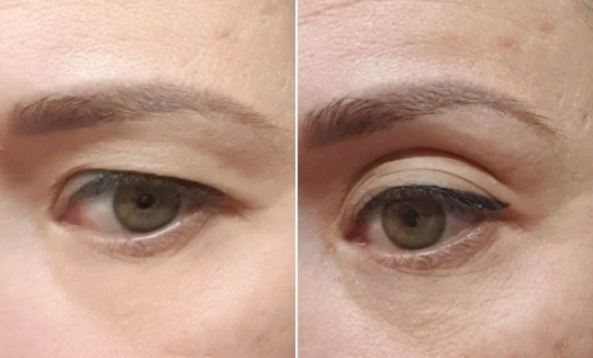 Хотела скорректировать нависшее веко именно в уголках глаз. Но эти наклейки не помогли. Да и с макияжем они заметны..