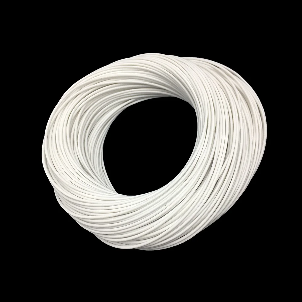 Покупал провод 1Ом/м. Пришел белого цвета в соответствии с заказанной длиной. Изоляция мягкая, вонючая. Внутри медная жила примерно 0.1 мм в диаметре обвитая вокруг нитей из стекловолокна.