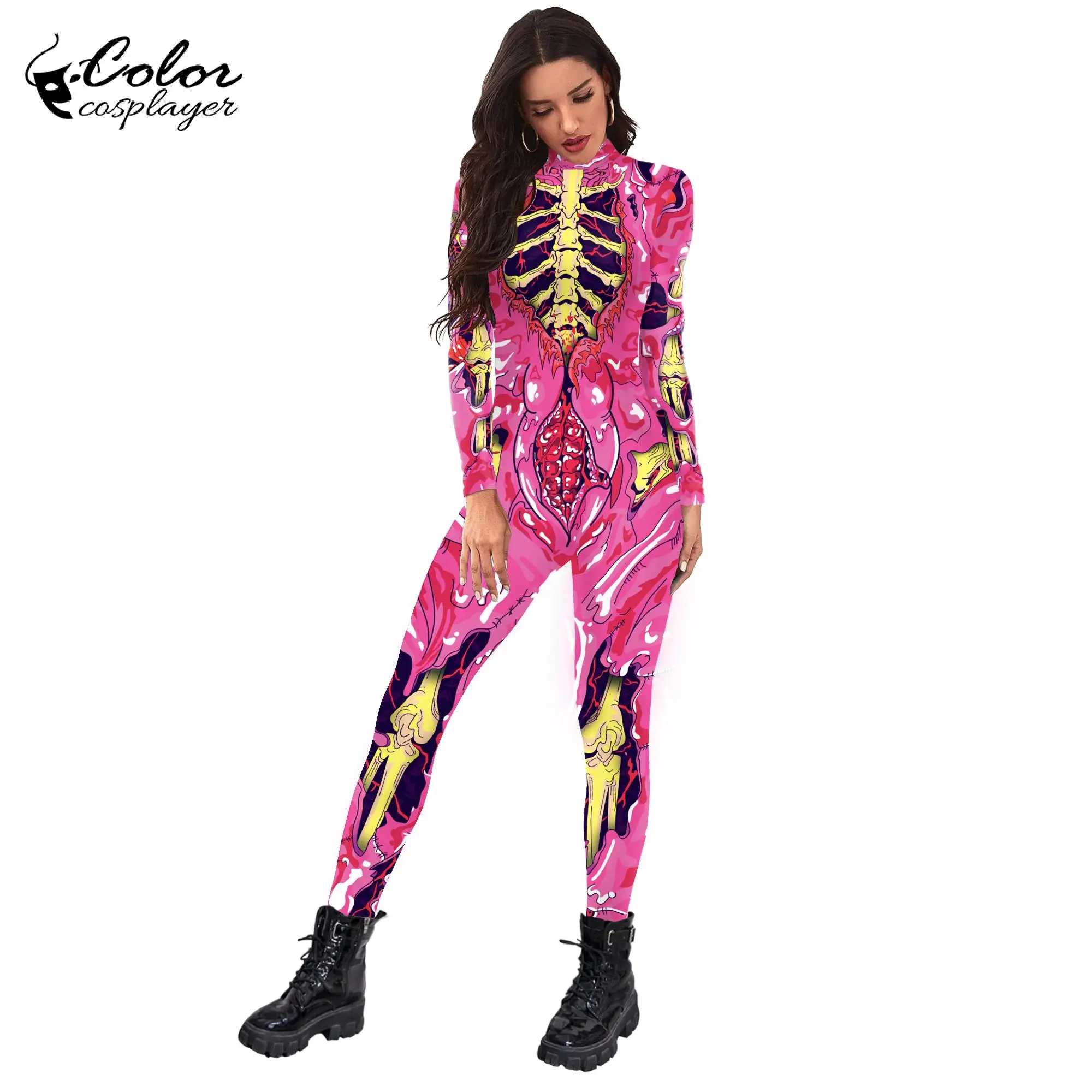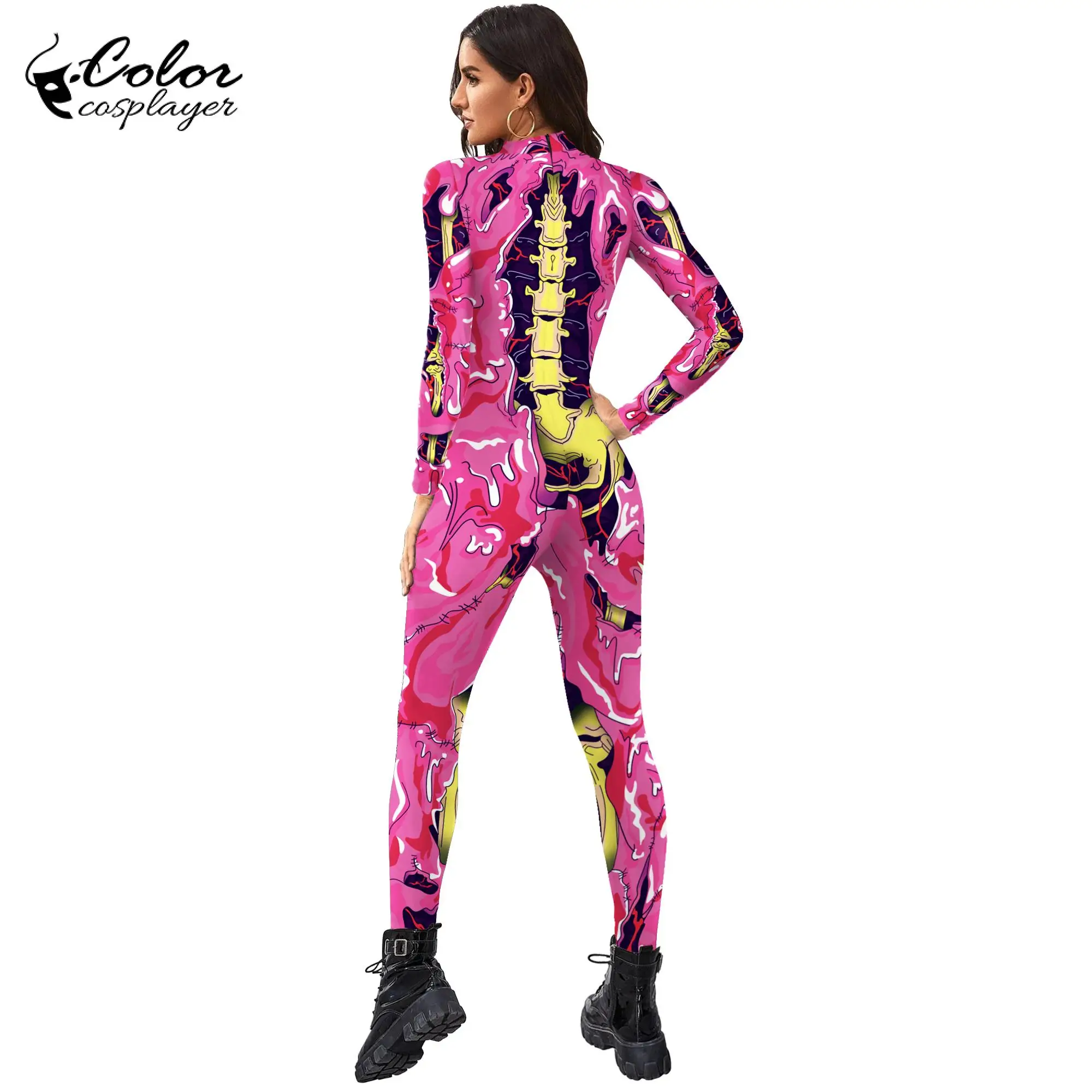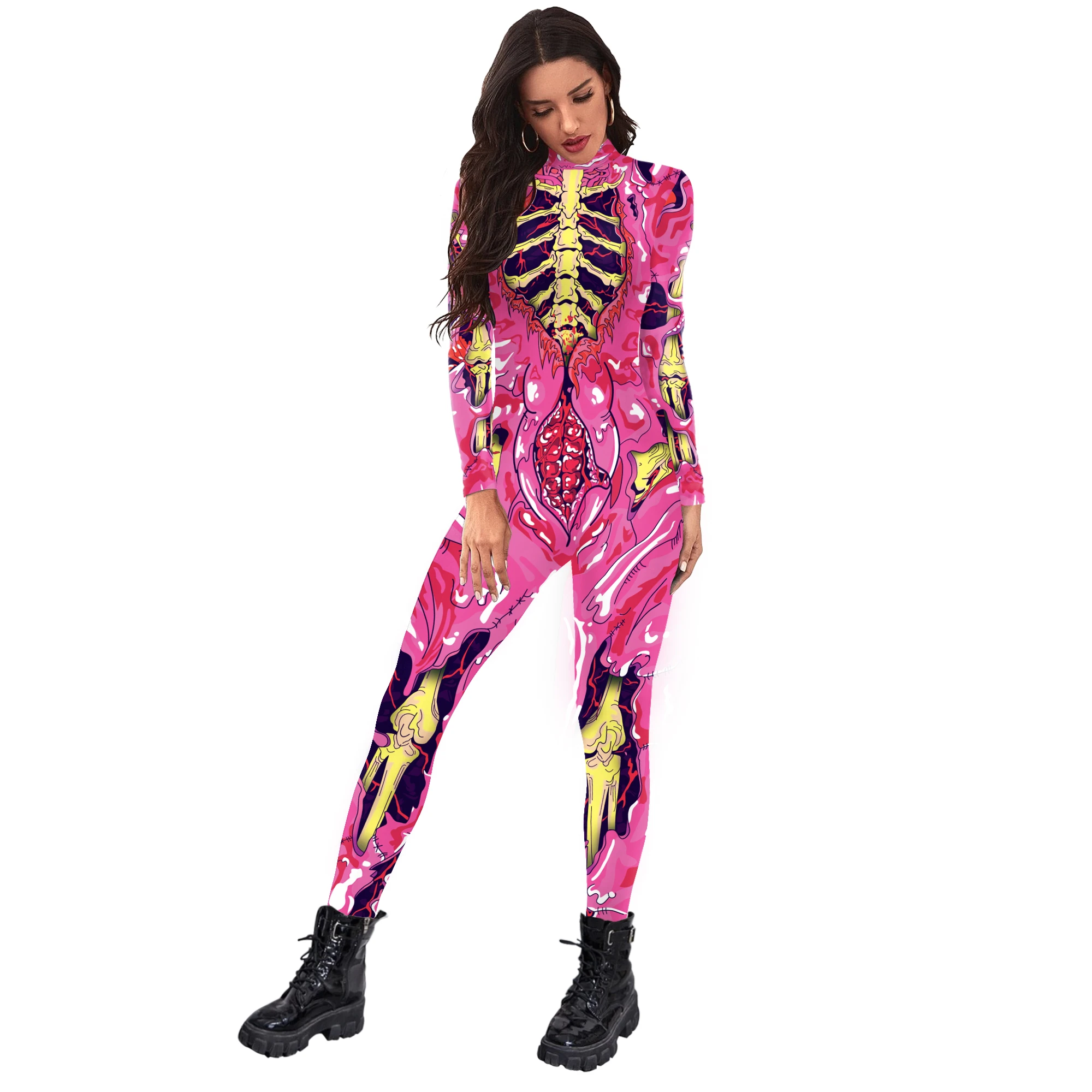 Модный костюм для косплея на Хэллоуин с 3D рисунком скелета, Женско...