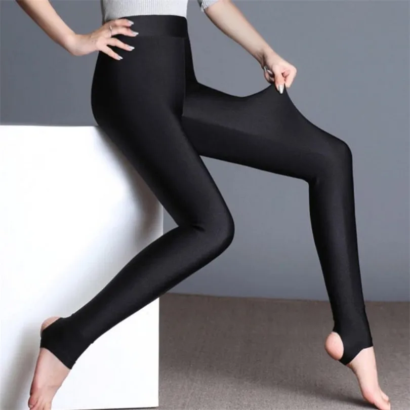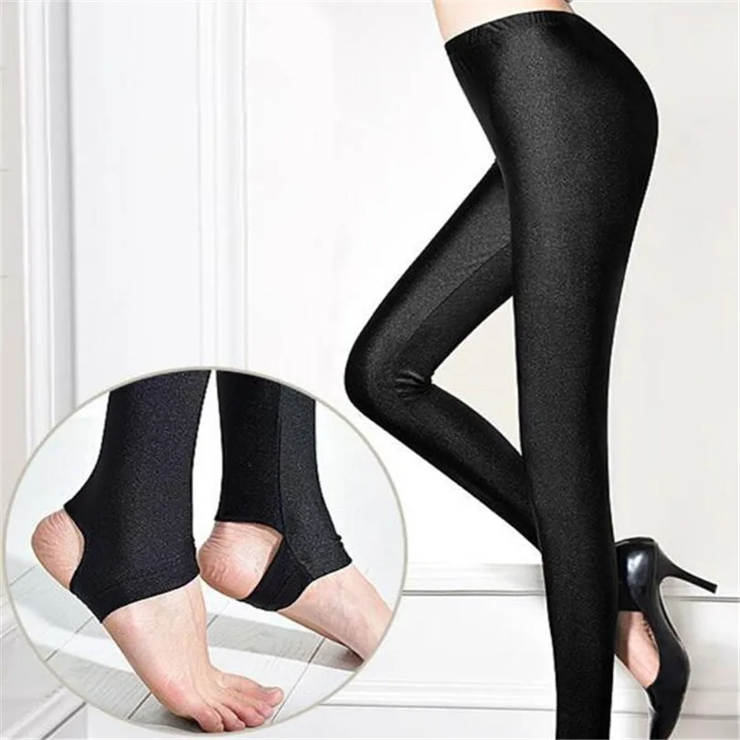 CUHAKCI, эластичные черные леггинсы из спандекса, женские блестящие леггинсы, однотонные женские эластичные повседневные брюки