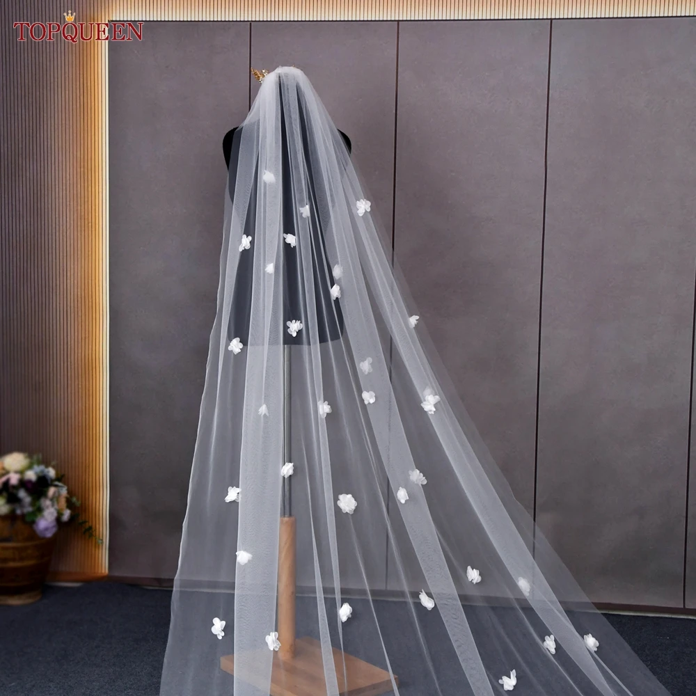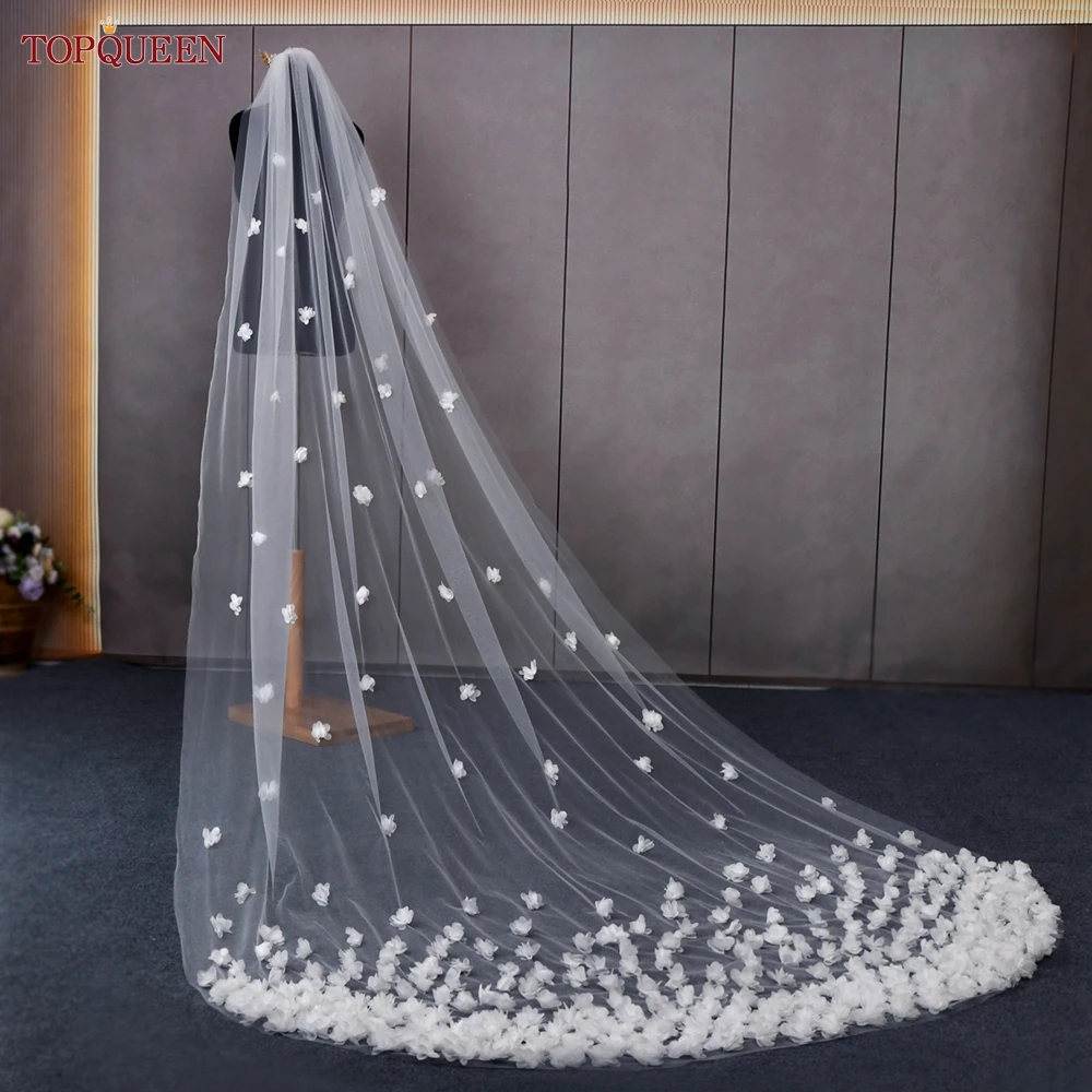Фата свадебная TOPQUEEN V93, фата свадебная с 3d цветами, фата невесты с искусственным дизайном, мягкая Тюлевая, венецианская