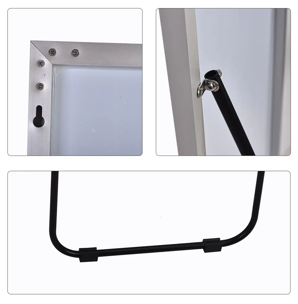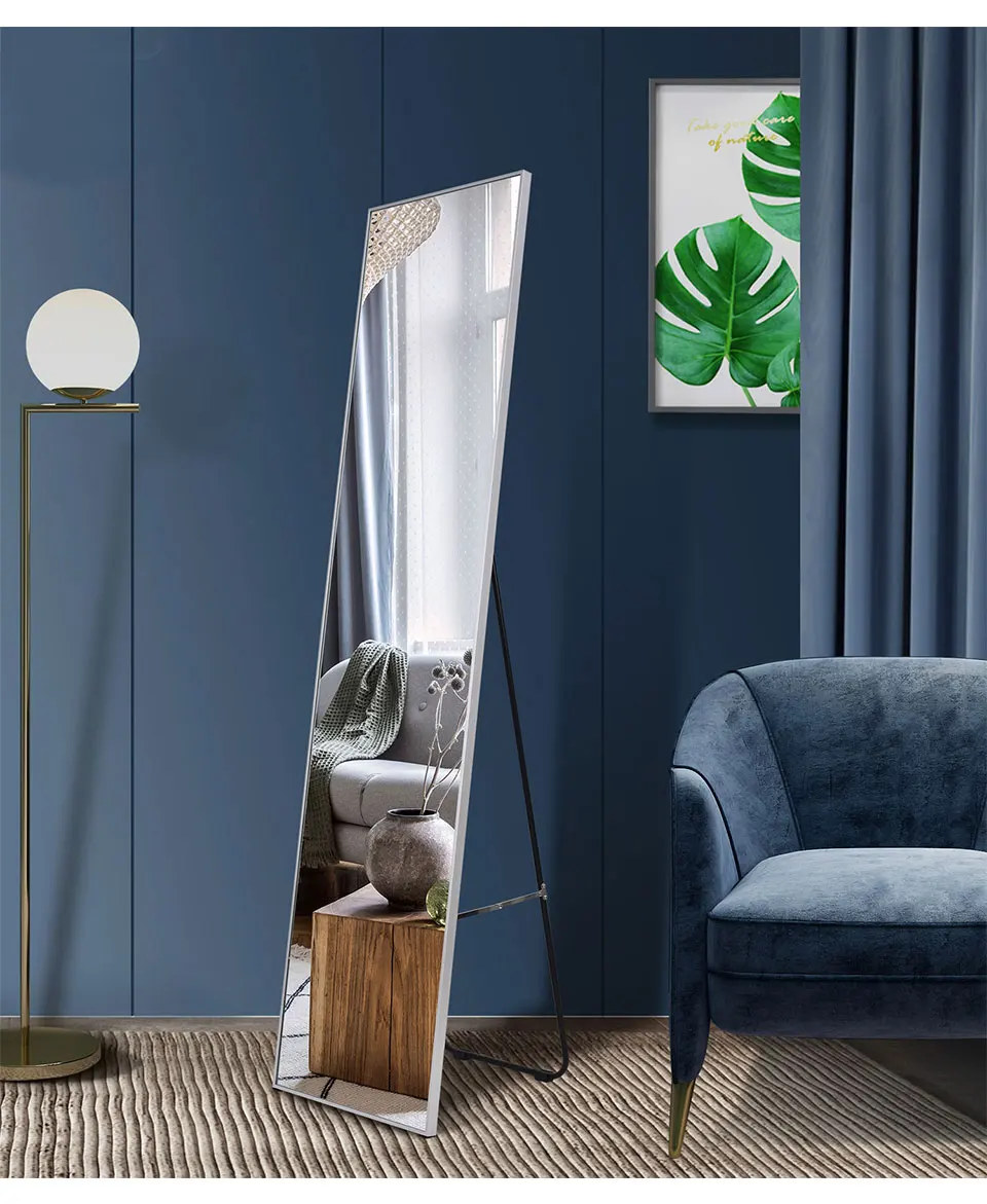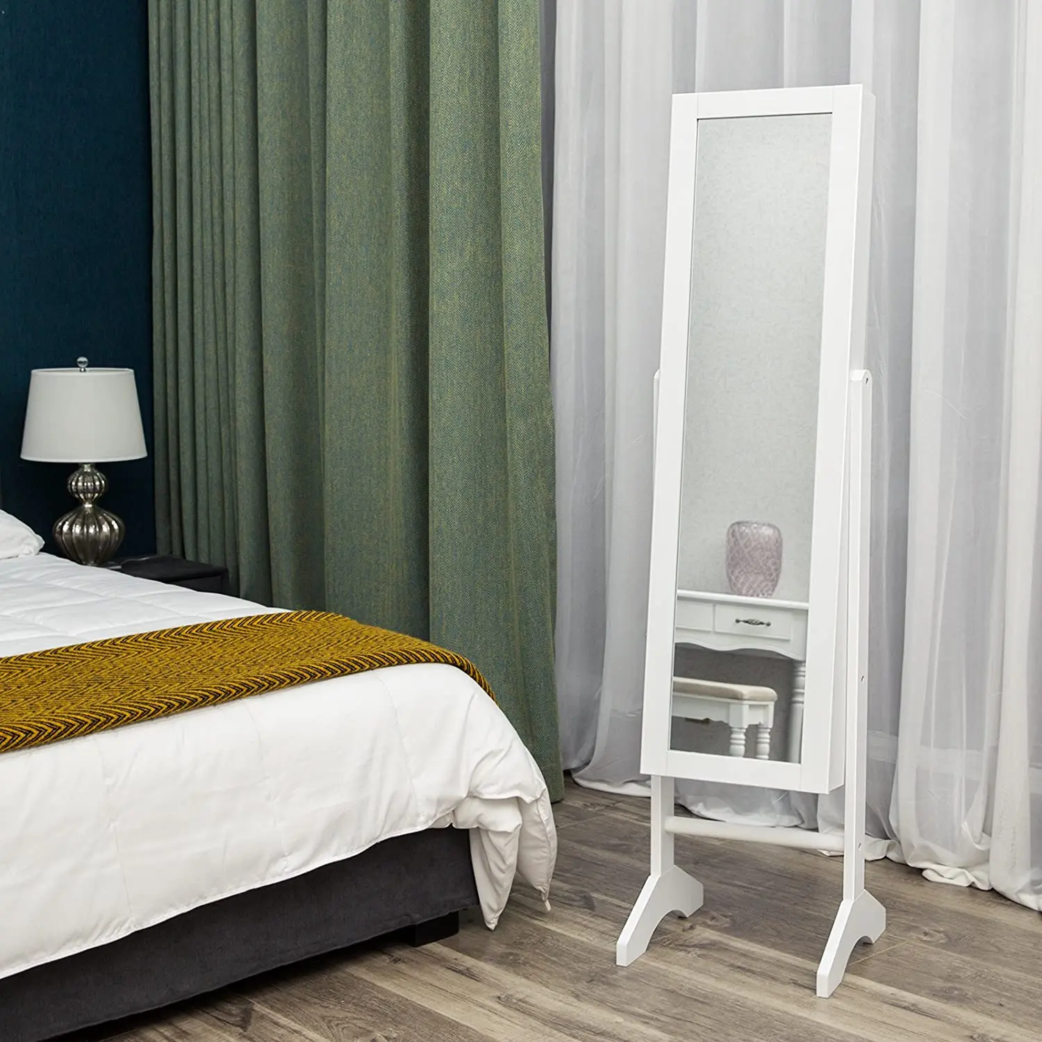 Полноразмерное зеркало, прямоугольное зеркало с отдельным напольным покрытием и органайзером для ювелирных изделий, регулируемые углы наклона, белый цвет
