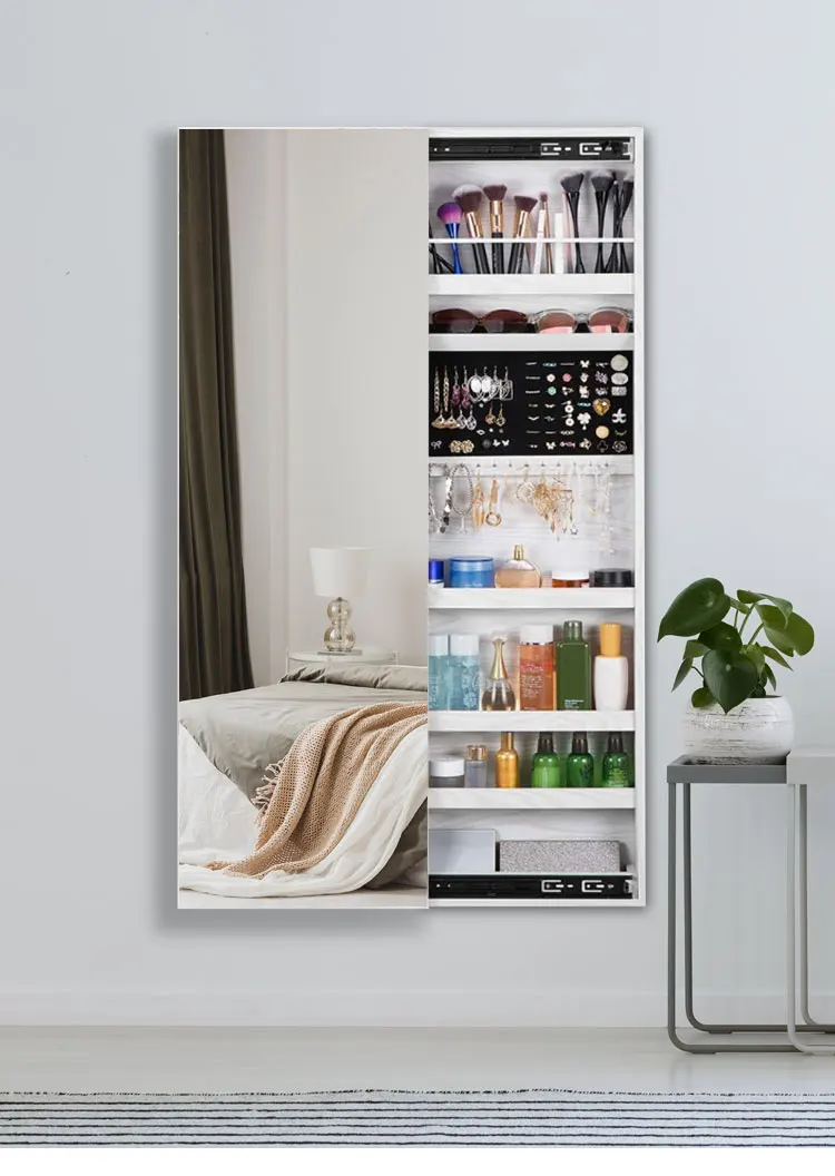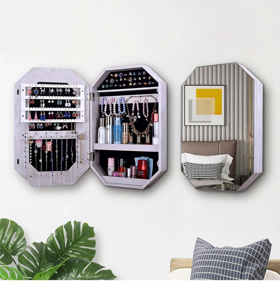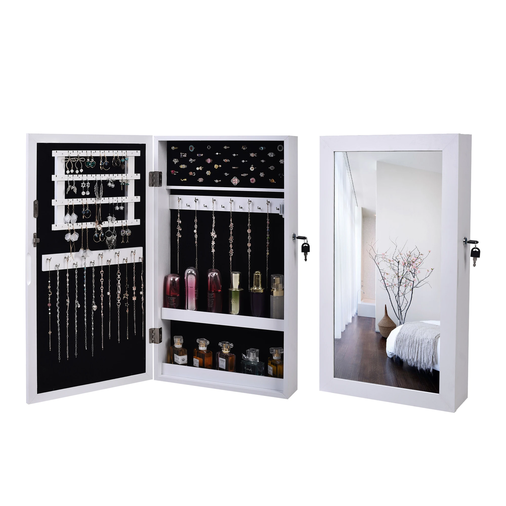 Этот ювелирный шкаф с зеркалом является идеальным местом для хранения всех ваших ювелирных изделий и аксессуаров для красоты. Очень элегантный с его цветом, гардероб будет идеальным в вашей спальне, гардеробной или прихожей. У него есть крючки и маленькие полки, чтобы разместить всю вашу коллекцию ювелирных изделий, очков, шарфов и т. д. больше никаких проблем с хранением ваших косметических аксессуаров!