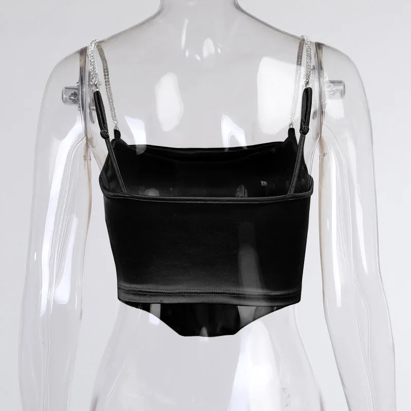 Женский топ на бретелях-спагетти, пикантный укороченный топ с цепоч...