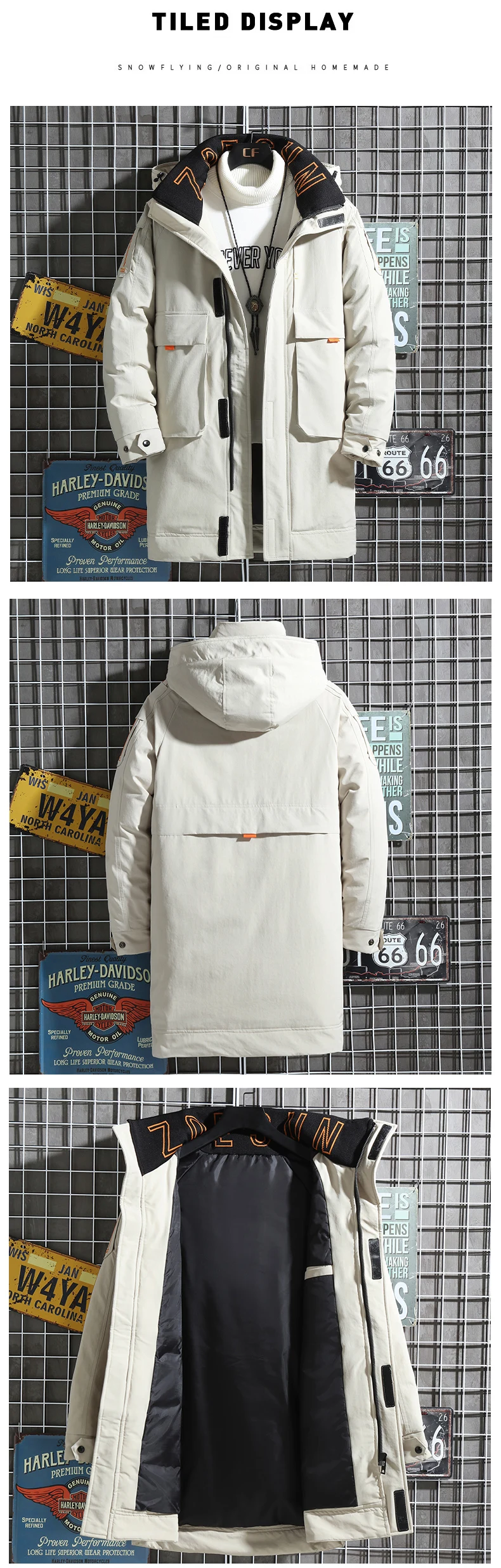 Пуховик мужской средней длины с капюшоном, теплый свободный пуховик...