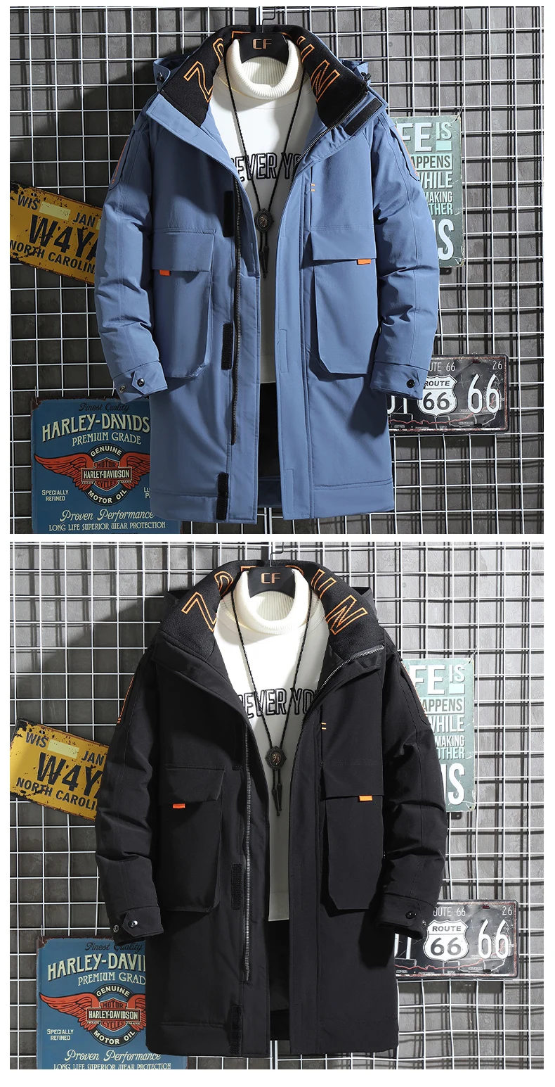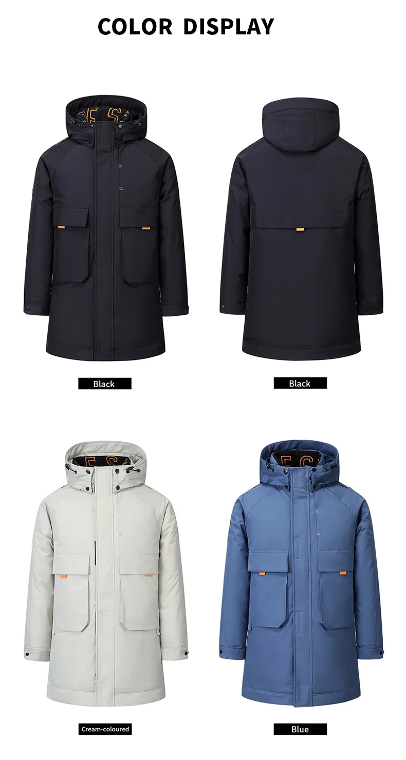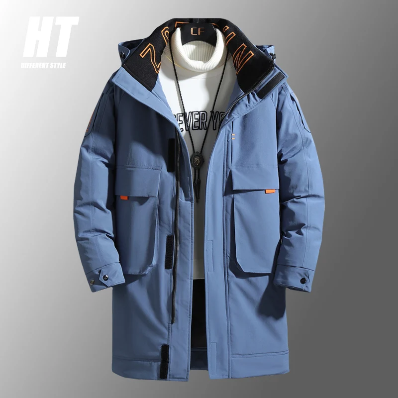 Мужской теплый пуховик, повседневная Толстая куртка на белом утином пуху, дышащая парка средней длины с капюшоном, новая зимняя Лыжная одежда для улицы