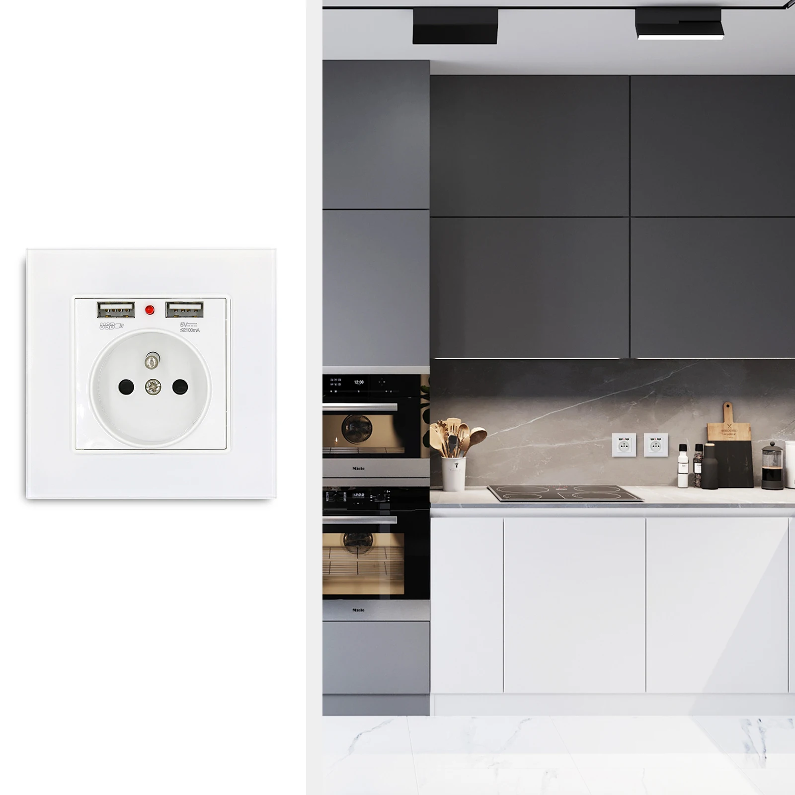Настенная розетка BSEED с двумя Usb-портами, 16 А, 86 х86 мм