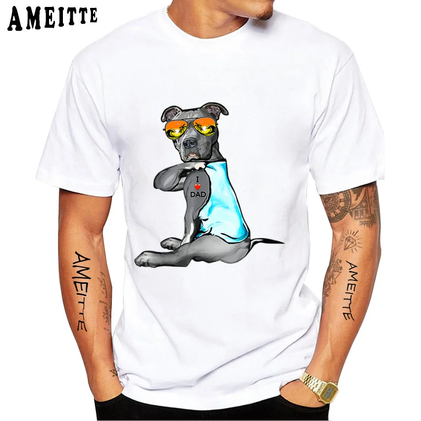 Футболка мужская с коротким рукавом, смешная собака, Питбуль, I Love, папа, тату, очки, повседневный топ в стиле хип-хоп, винтажная белая рубашка, на лето
