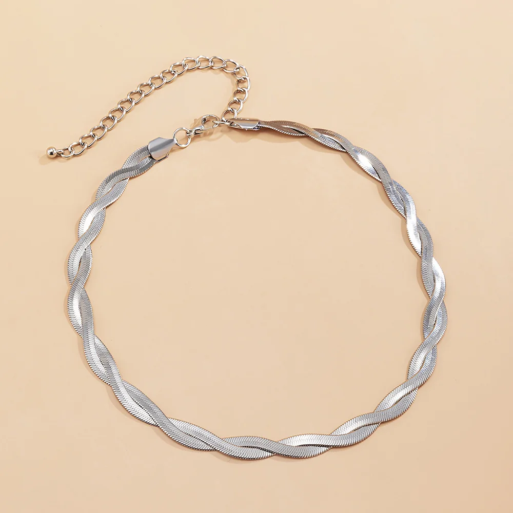 Модные золотистые и Серебристые ожерелья для женщин двухслойная обмотка плоская змеиная цепочка винтажное ювелирное изделие ожерелье в подарок