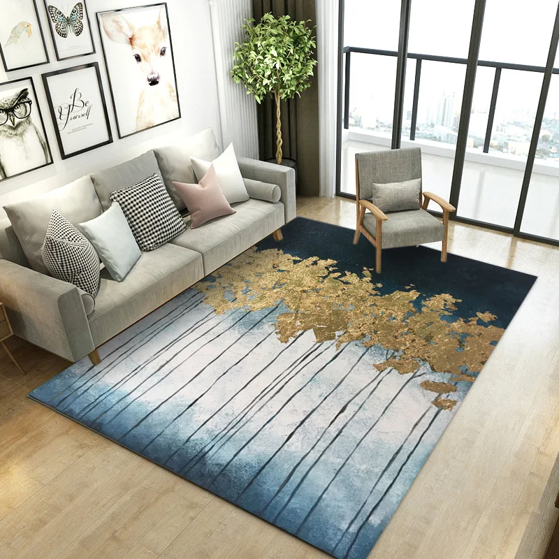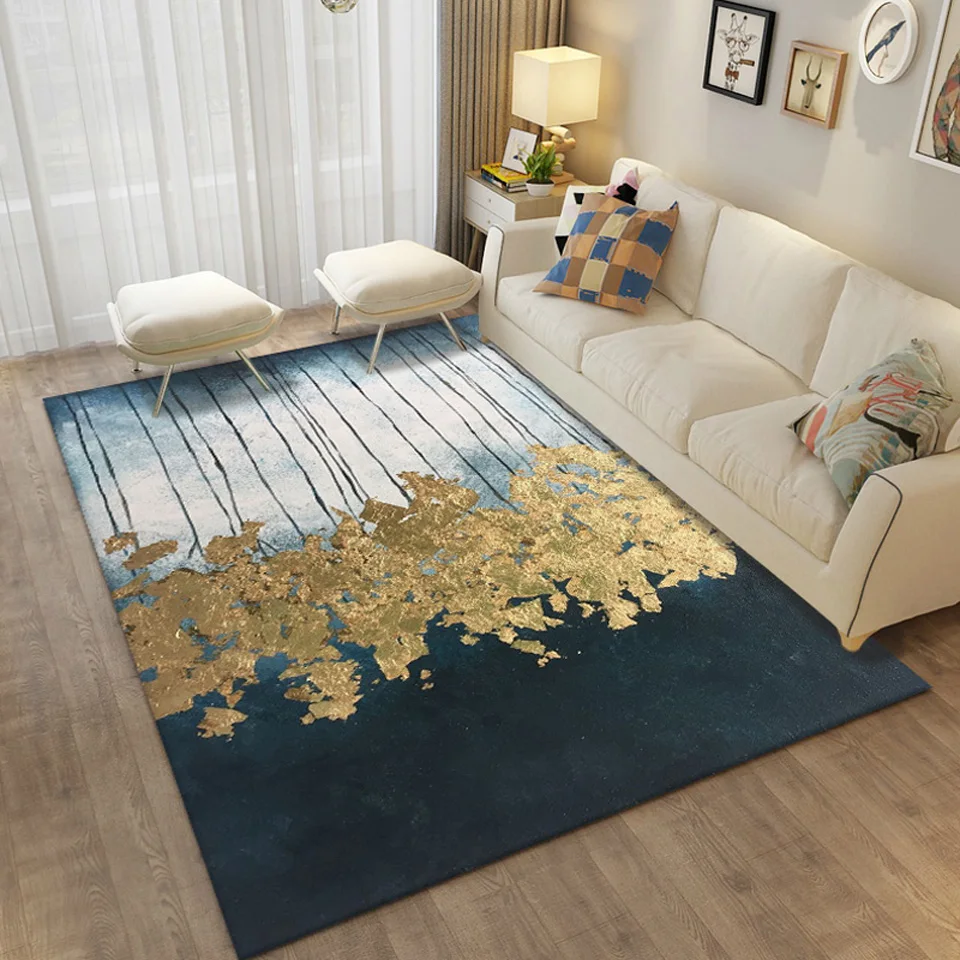 ковер в спальню Коврики Синий золотистый серый ковер для гостиной, современный декоративный прямоугольный ковер для журнального столика в скандинавском стиле, напольный коврик для столовой, спальни