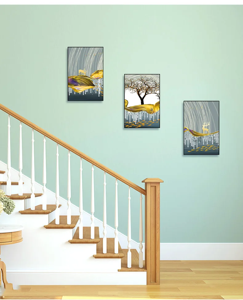 Золотистый лист олень камень Абстрактная живопись настенное украшен...