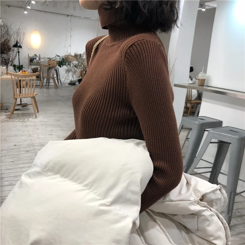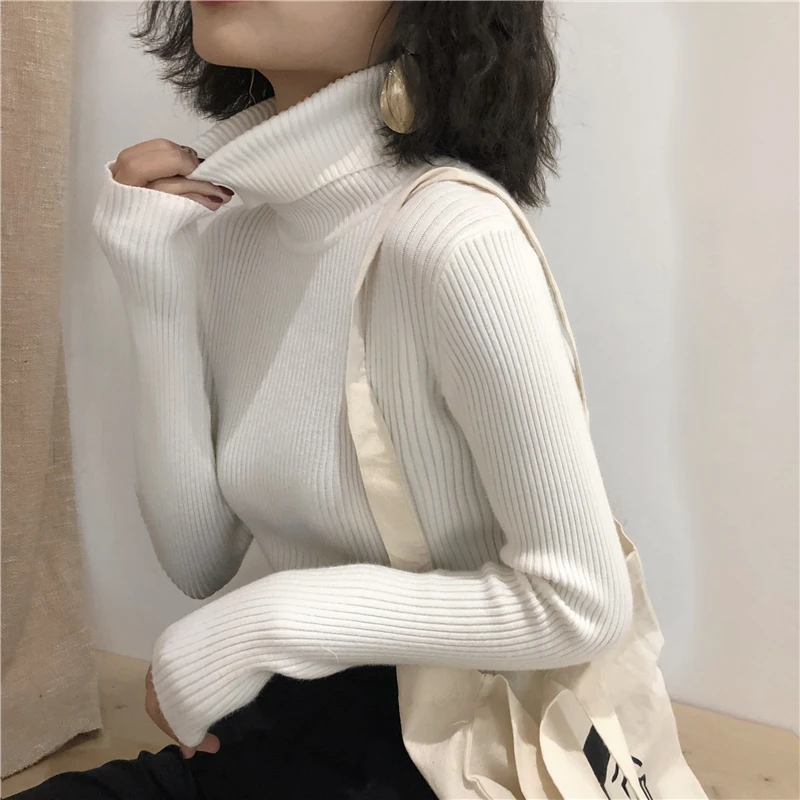 Свитер с высоким воротником, женские осенне-зимние топы, корейский облегающий Женский пуловер, джемпер, вязаный свитер, женский свитер