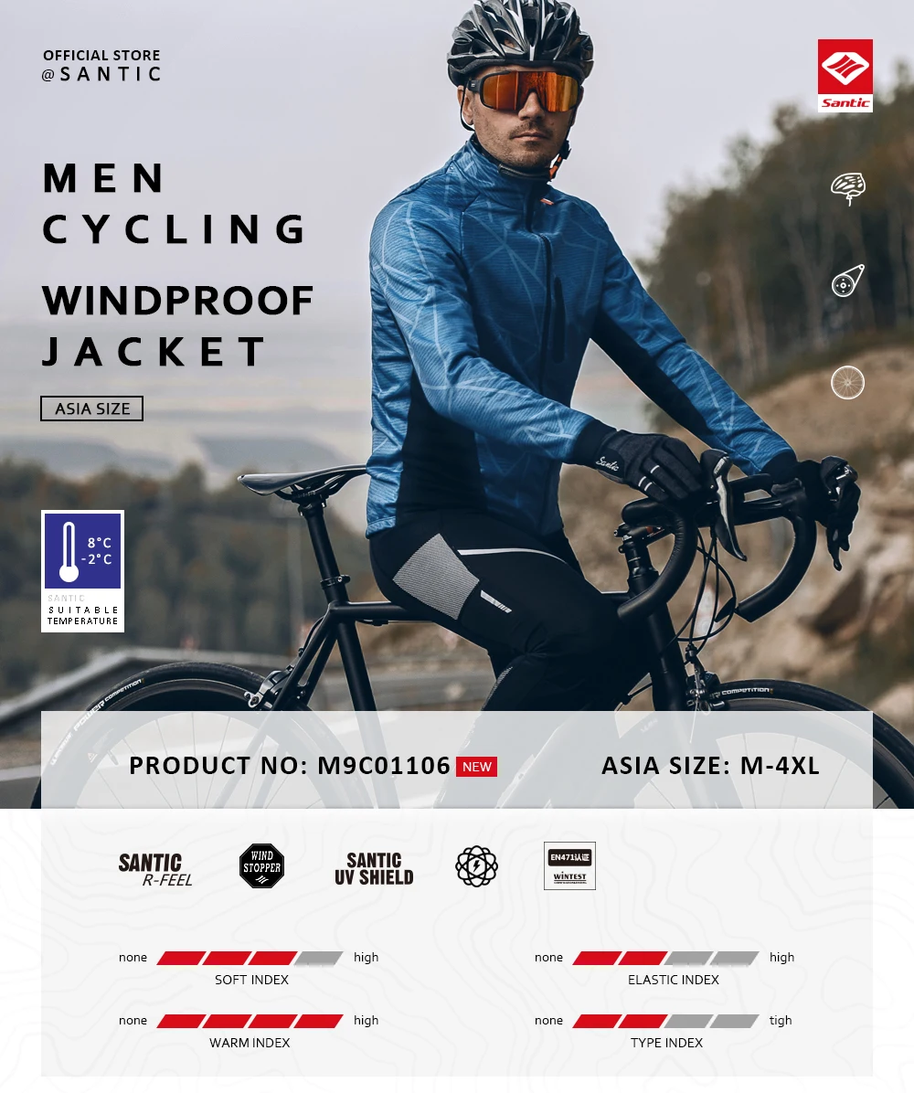 Куртка Santic для велоспорта, осеньзима, мужская куртка с длинным рукавом и защитой от ветра, одежда для велоспорта, Флисовая теплая