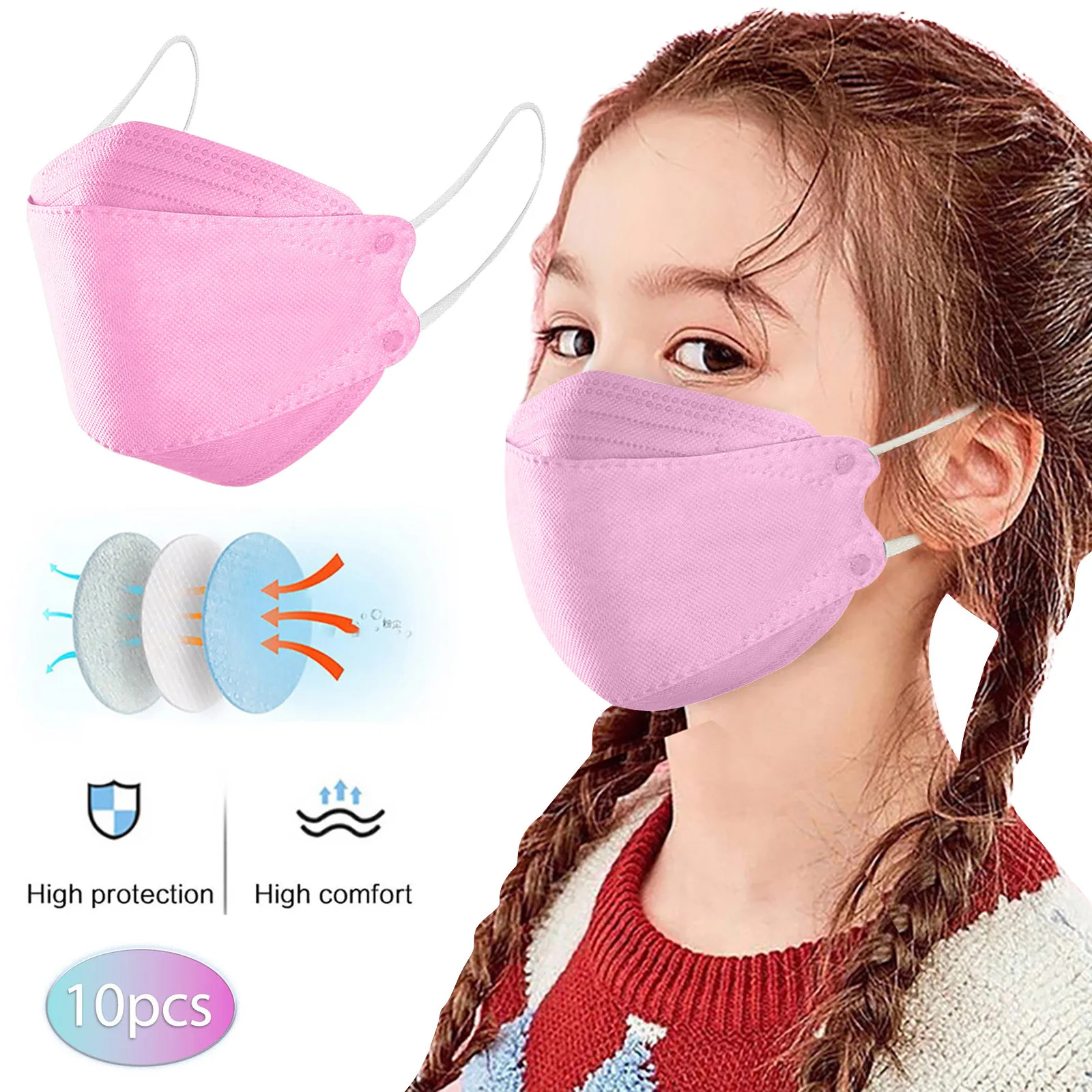 10 шт.Одноразовые Сертифицированный Уход за кожей лица-маска для детей, 4 слоя нетканый защитный 3DFish_type покрытие для лица, дышащая и удобная