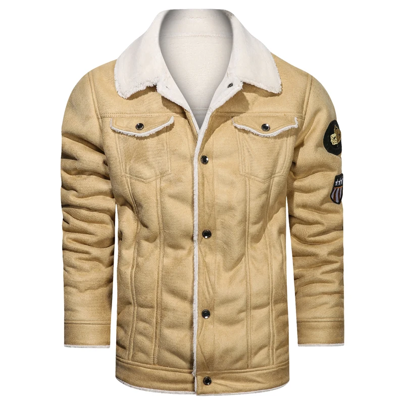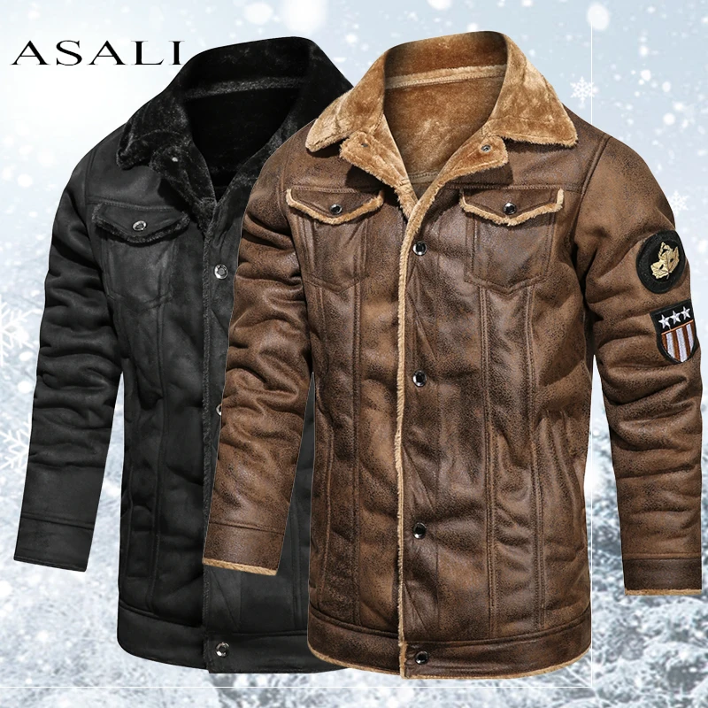 Длинная кожаная куртка, Мужская Флисовая Куртка-бомбер из овечьей шкуры, винтажная куртка-пилот для отдыха, из искусственной кожи
