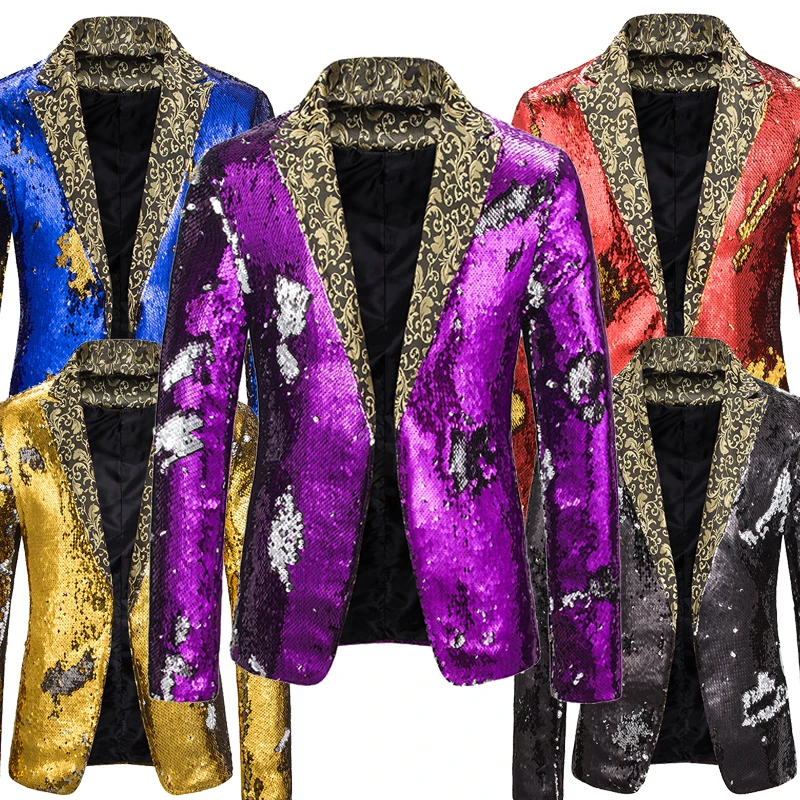 LUCLESAM мужской блестящий пиджак, приталенный мужской костюм, куртка, костюм сценического певицы, блестящие блейзеры, мужской костюм